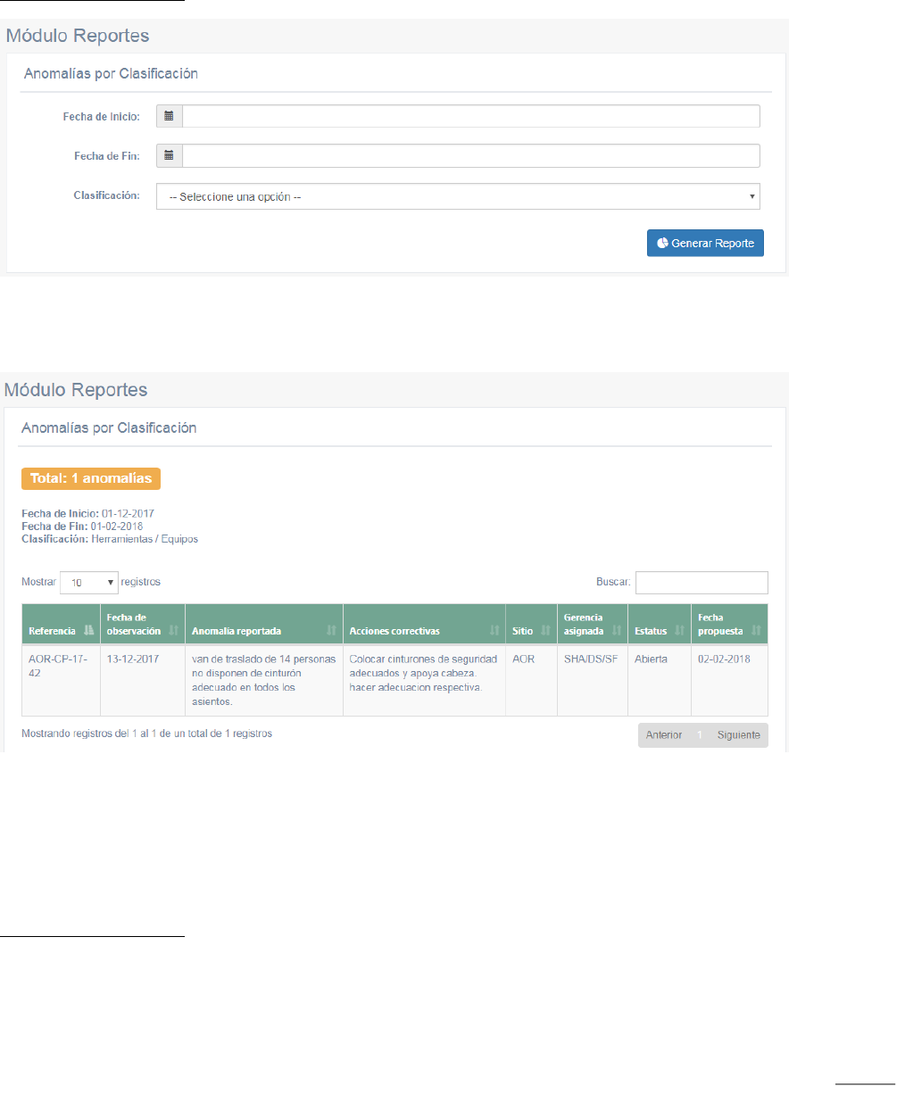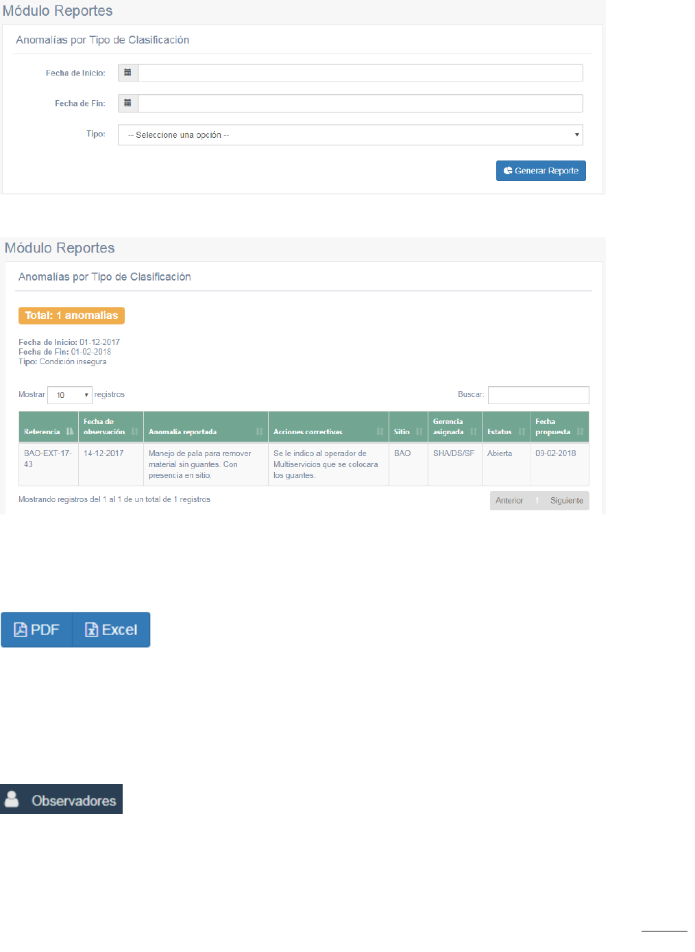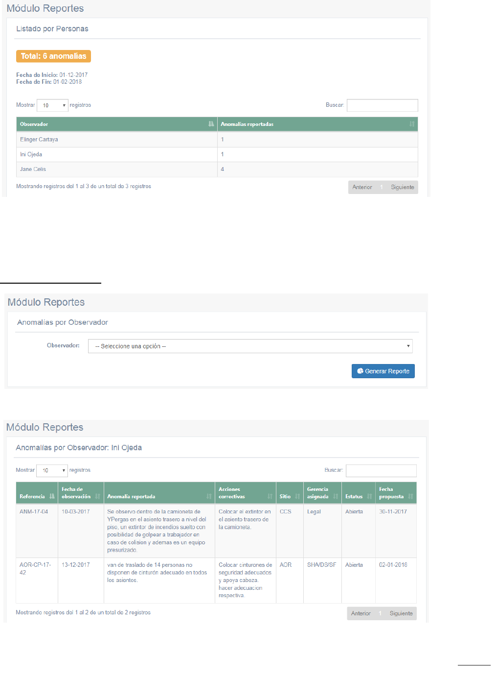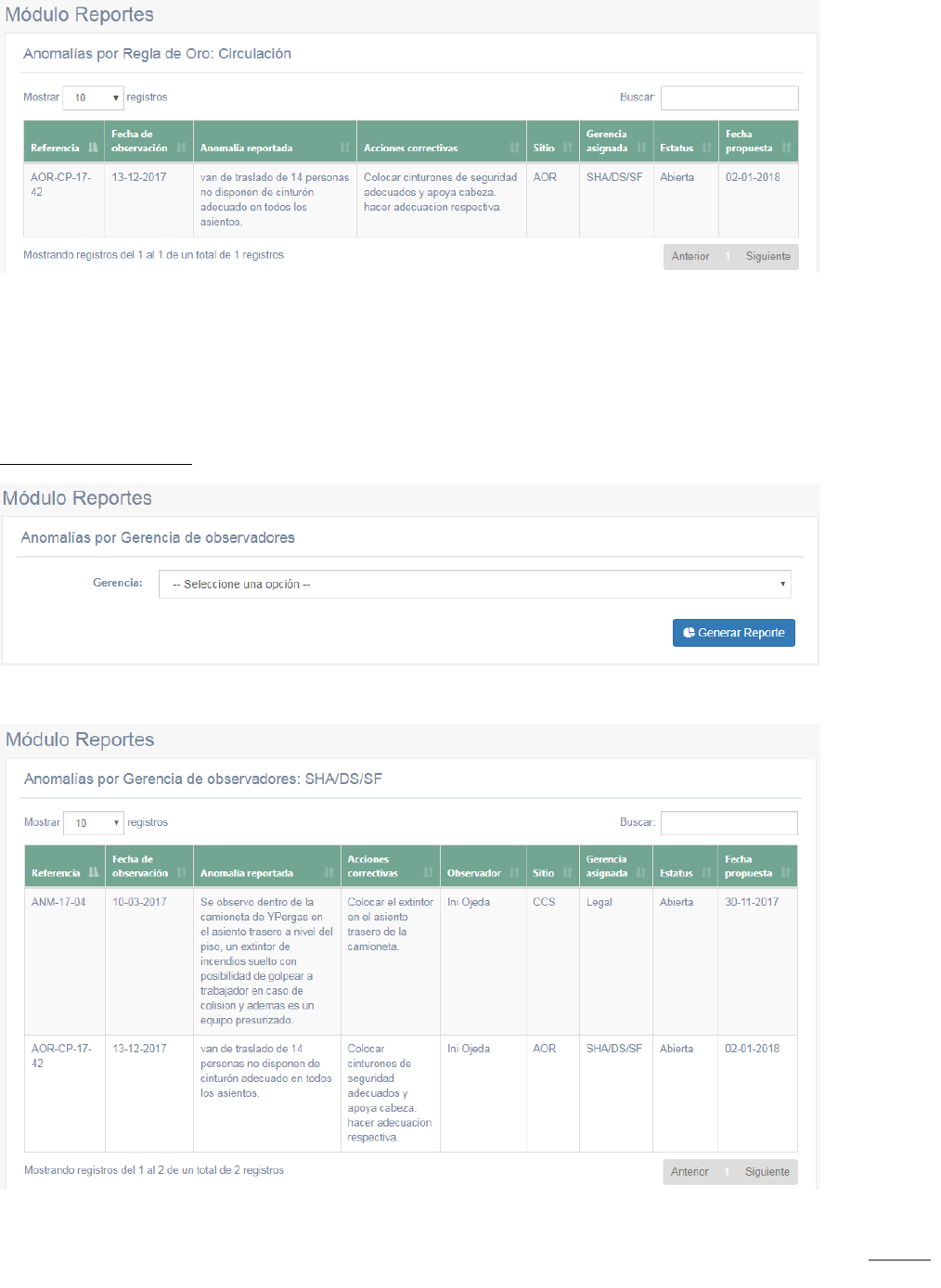 Reporte que genera el listado de anomalías registradas por los observadores cuya gerencia asociada