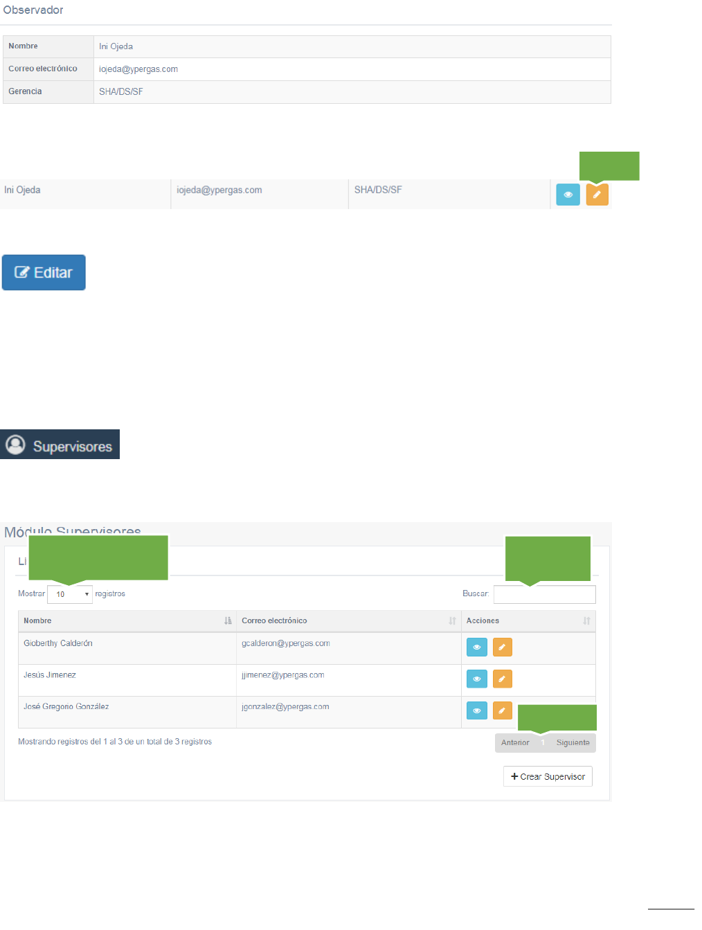 Para editar la información de un supervisor debe presionar el icono Editar del registro.