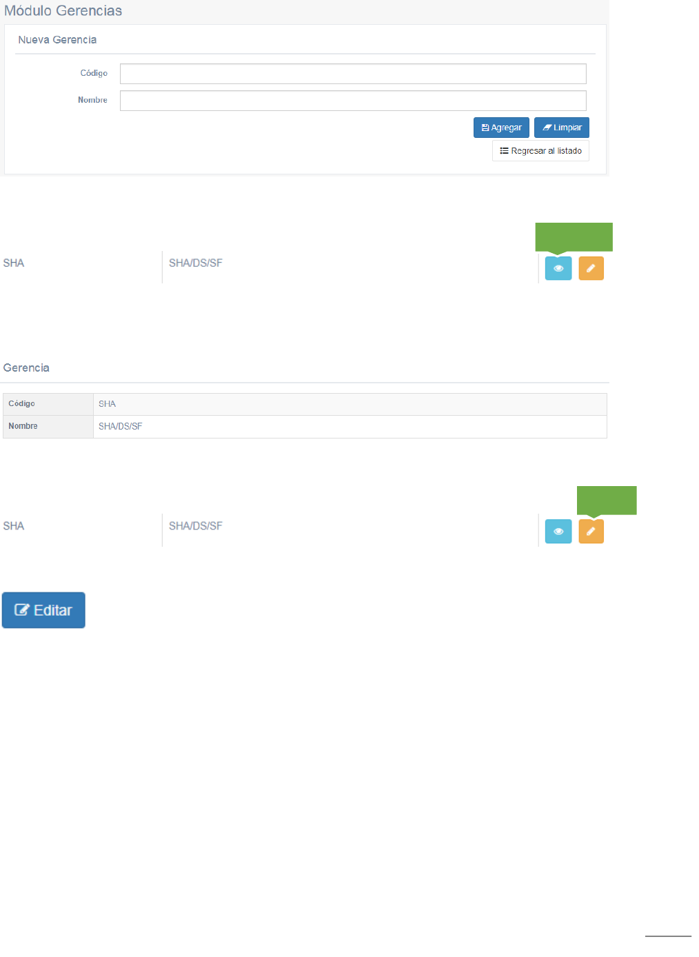 Para editar la información de una gerencia debe presionar el icono Editar del registro.