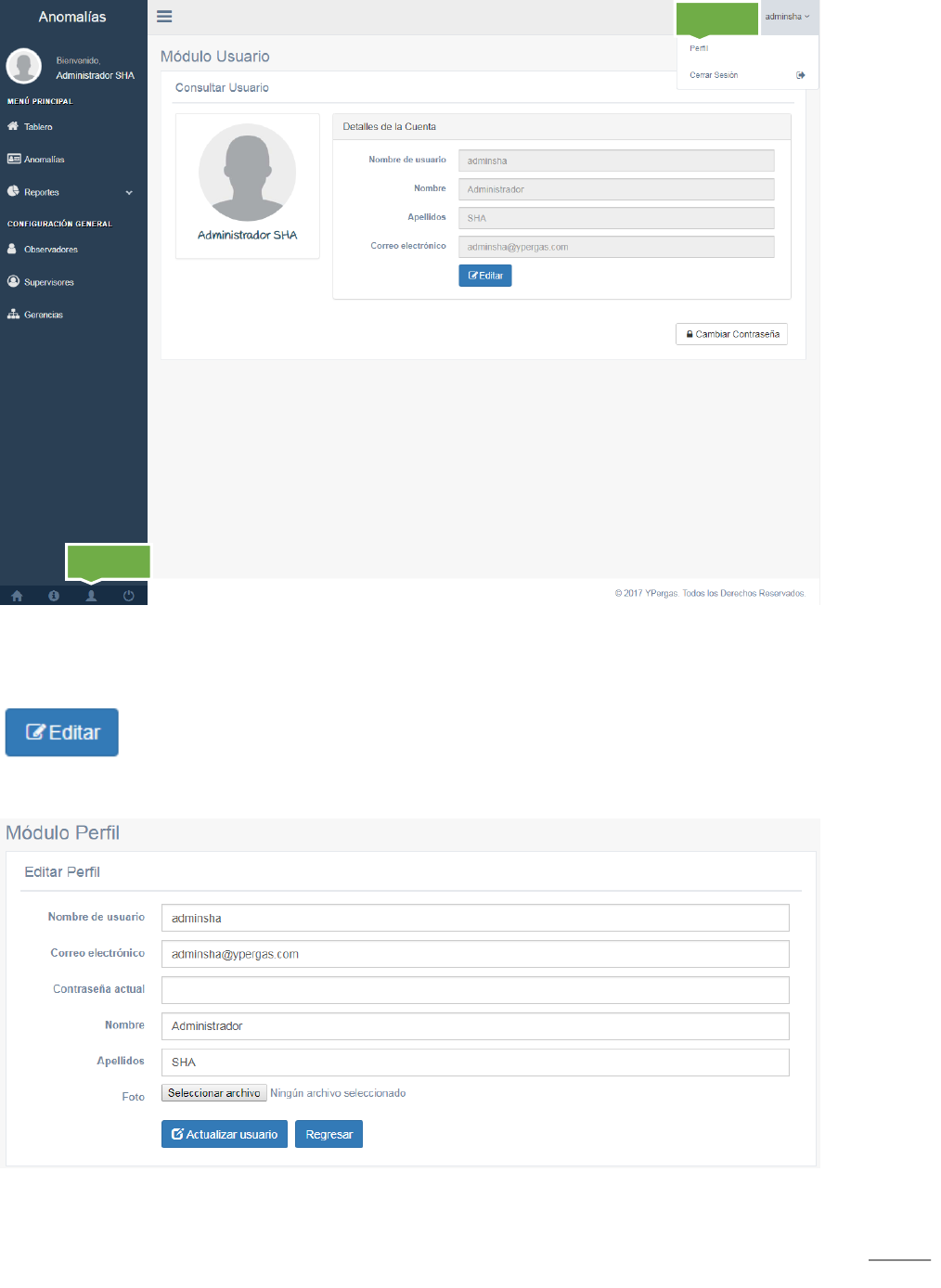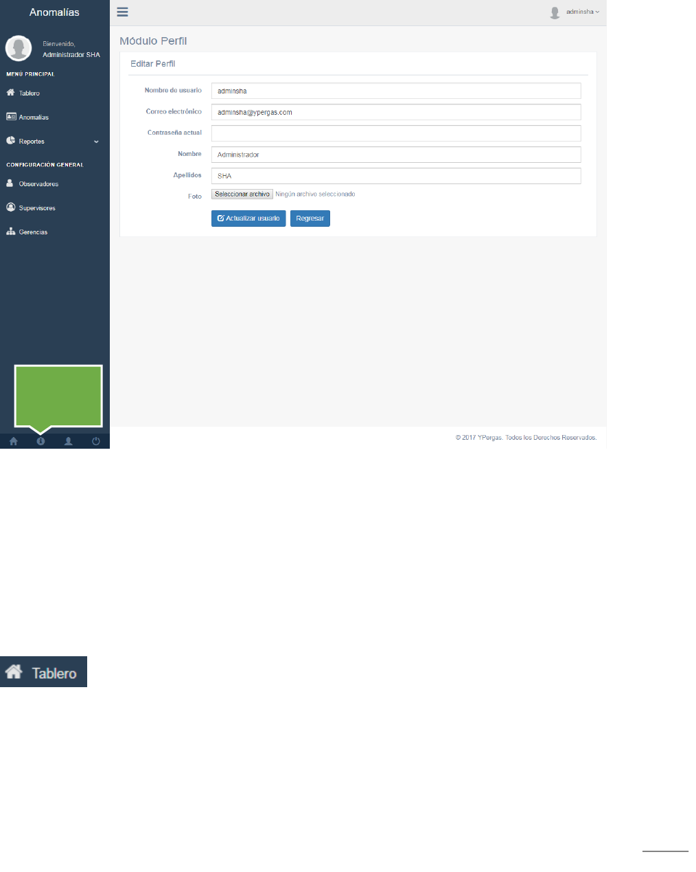 Esta opción permite modificar los datos del usuario en sesión: nombre, apellido, correo electrónico,