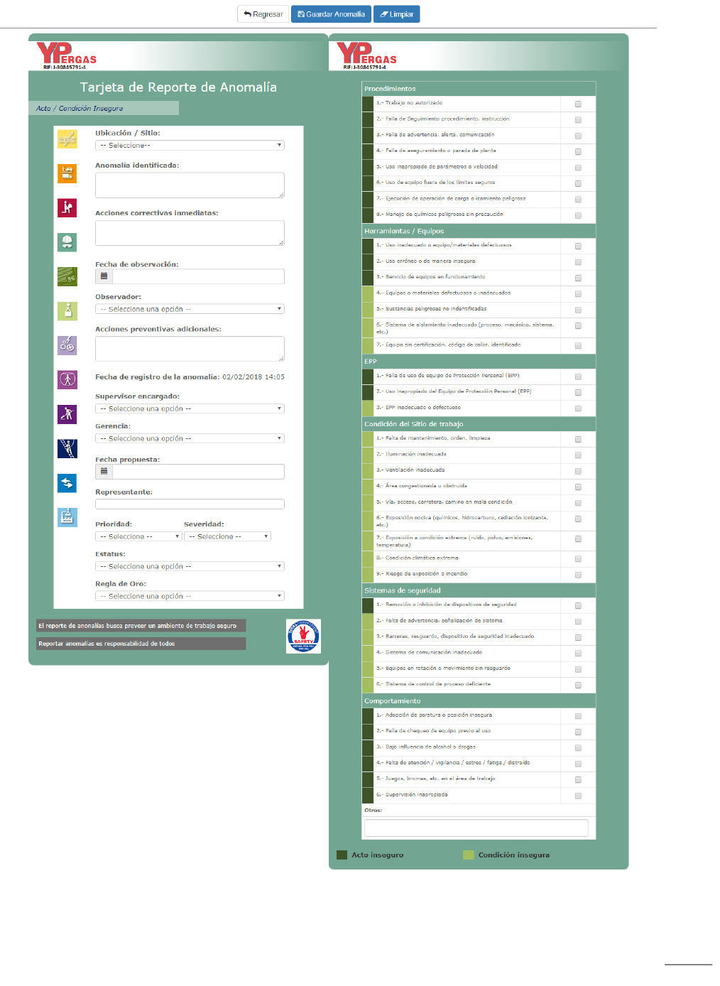 Reporte que genera el listado de anomalías según el criterio de Acto inseguro o Condición insegura