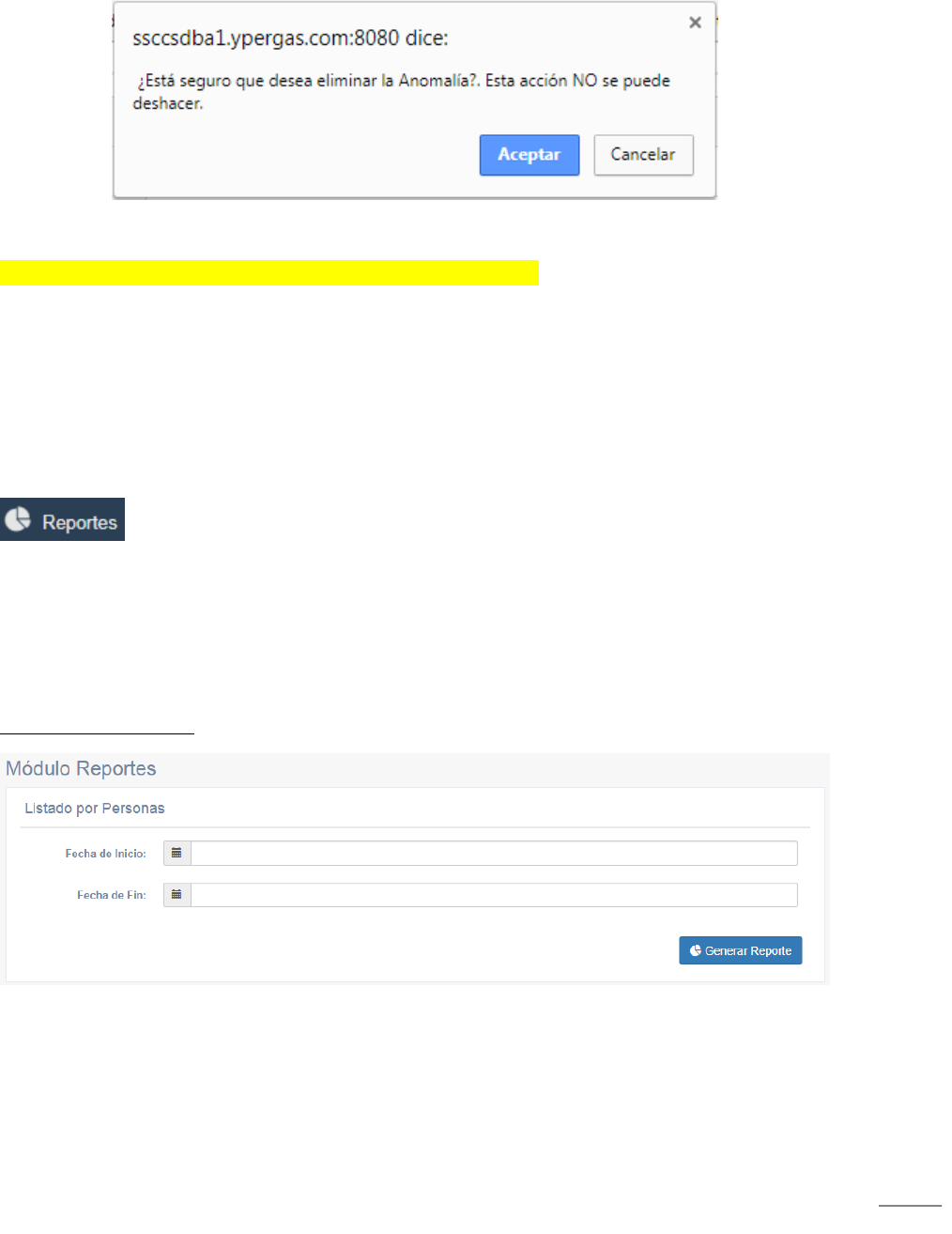 Para eliminar una anomalía utilice el botón Eliminar, el cual se encuentra al final de las dos
