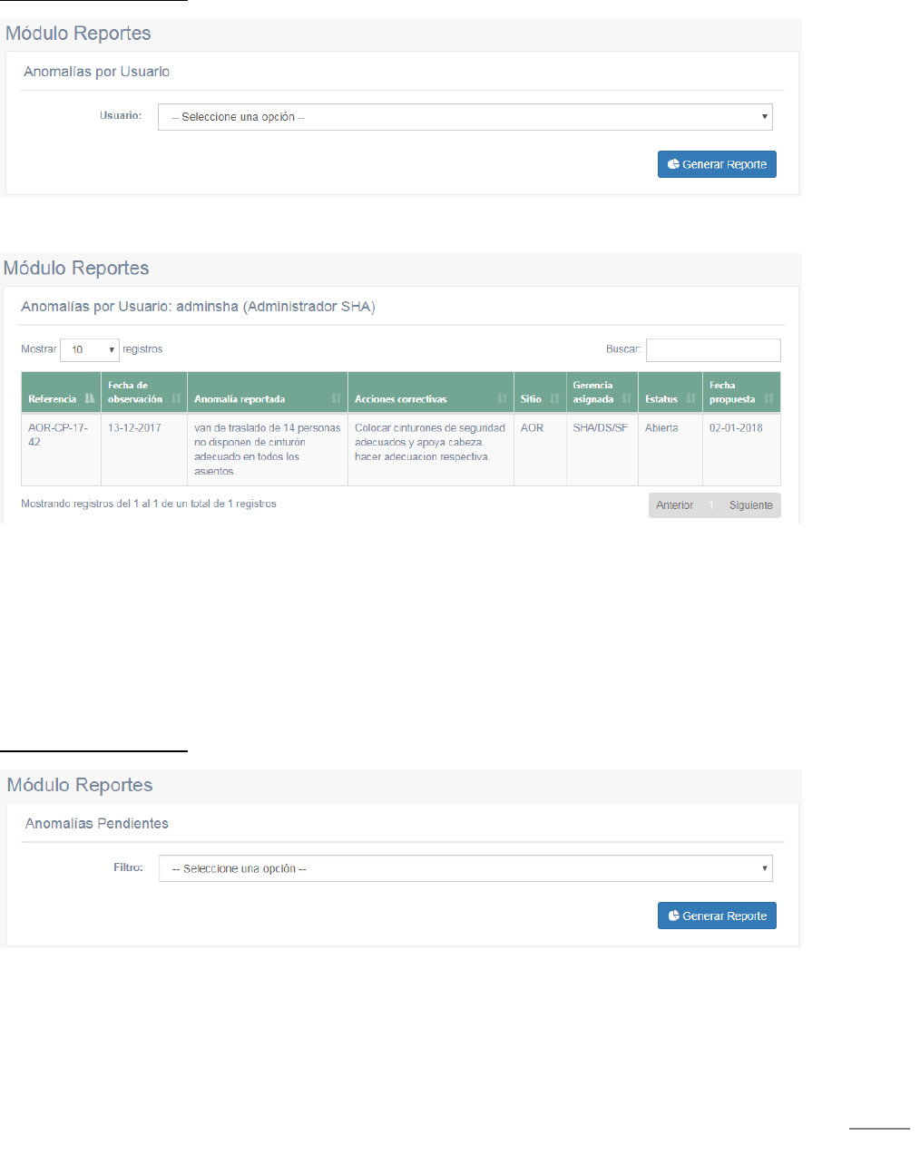 Reporte que genera el listado de anomalías registradas por el usuario del sistema especificado.