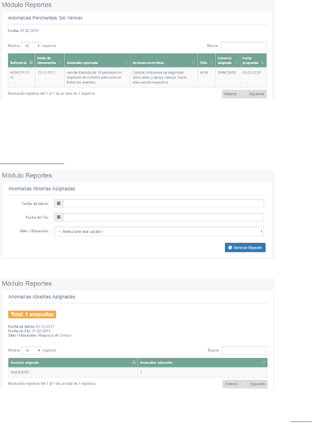 Reporte que genera un listado de anomalías sin vencer, con estatus Abierto para el periodo de