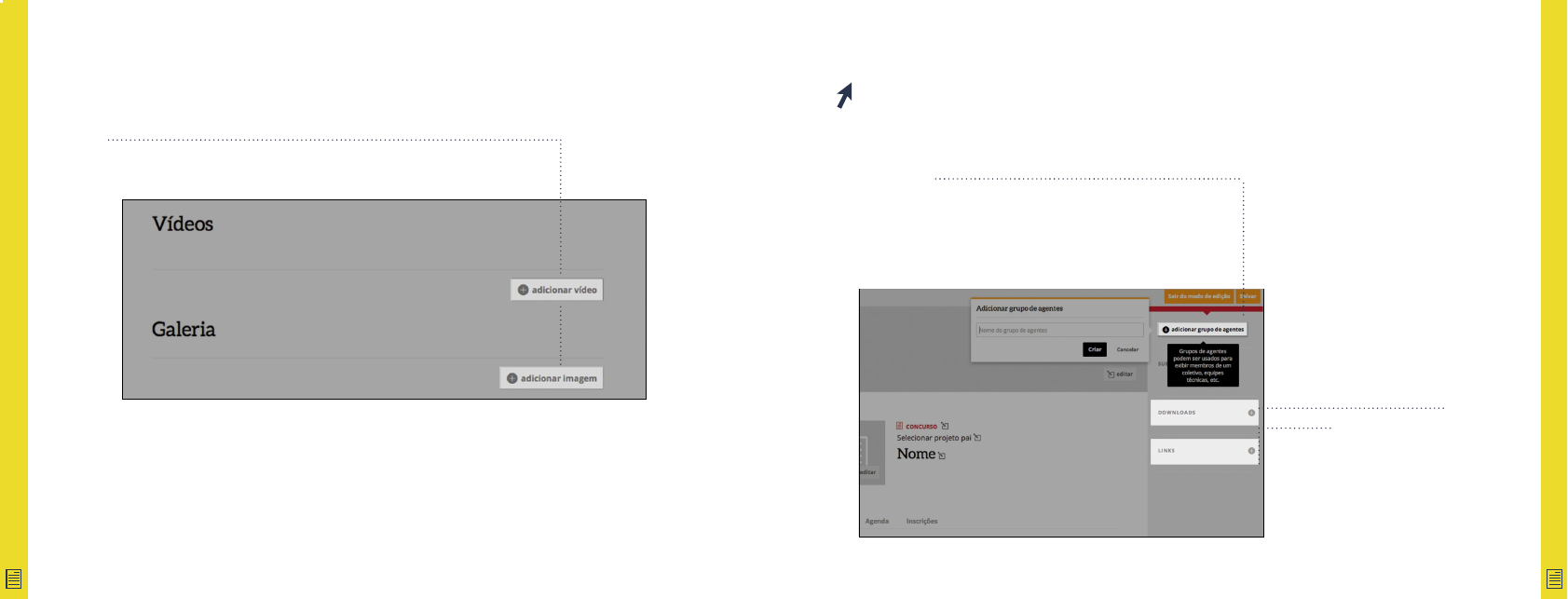 PODE adicionar/remover fotos, links, vídeos, downloads;