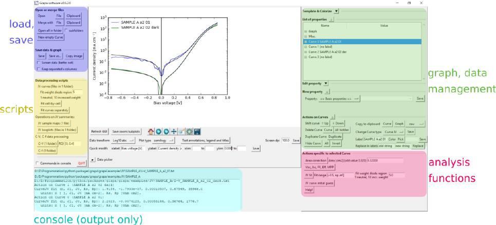 The data analysis functions currently focus on photovoltaics and semiconductor material science.