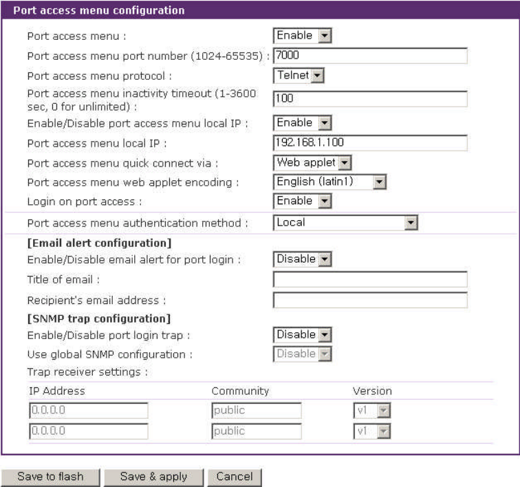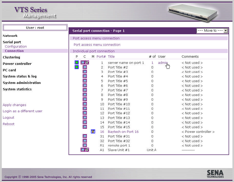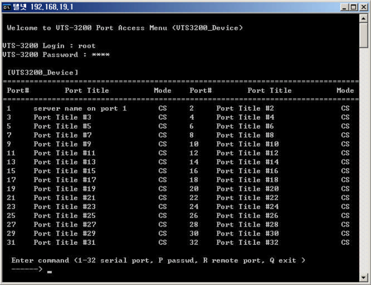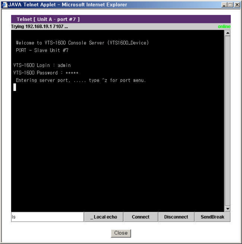 the serial port or the remote port. Figure H-9 shows the screen of connection to Port #1.