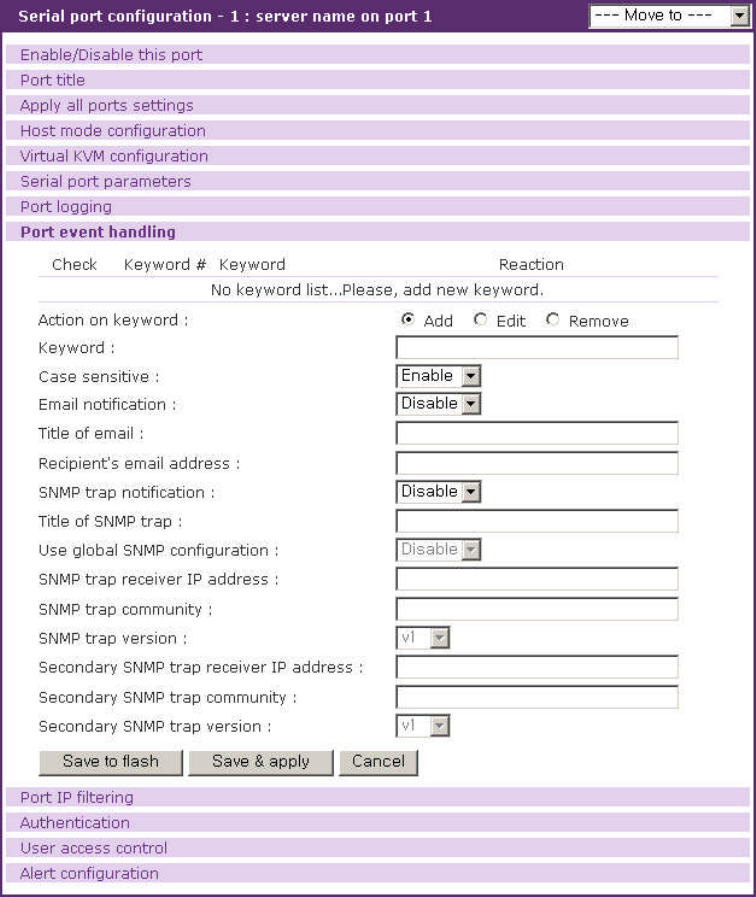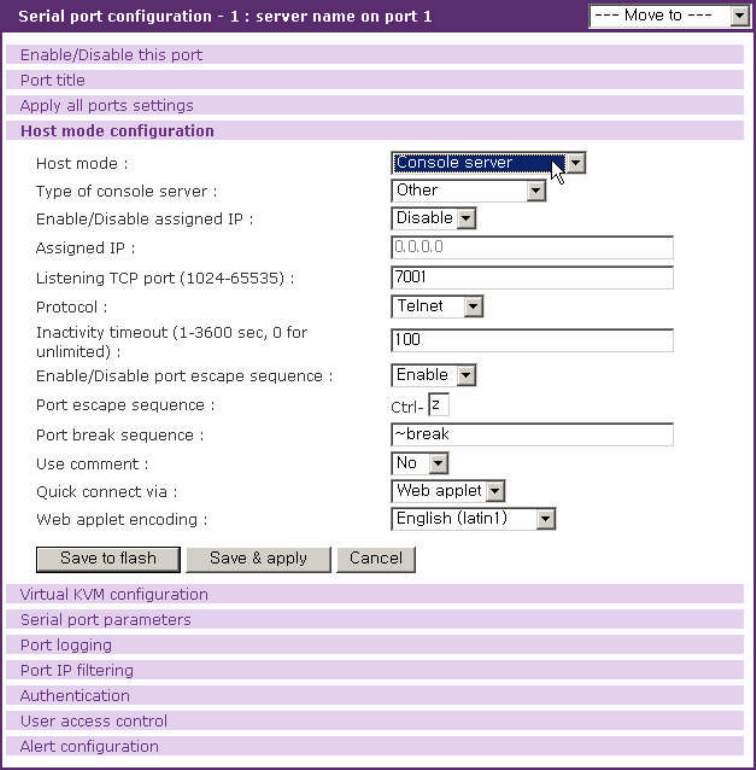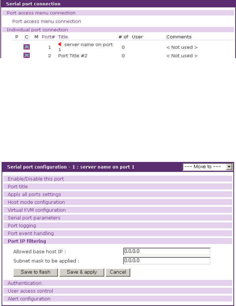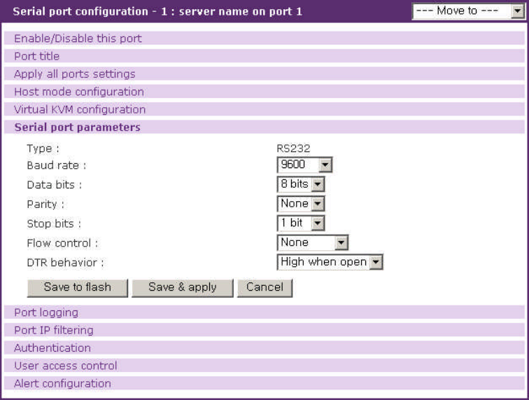 Step 4. Open the Serial port connection page by selecting the Serial port - connection menu
