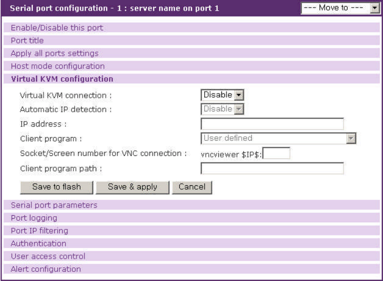 Step 2. Configure the Virtual KVM configuration of Port #1 as below: