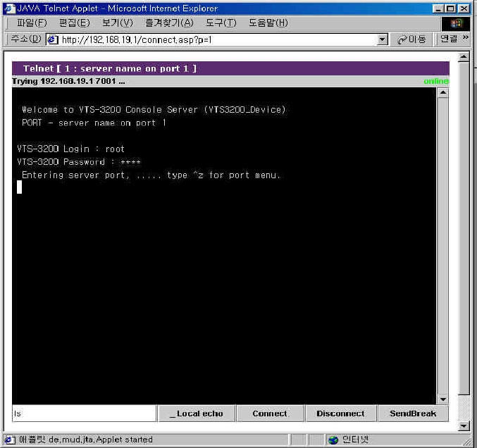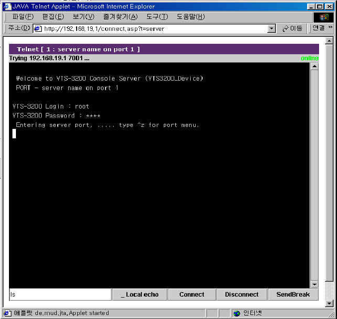 through the virtual KVM connection of VTS. It has such functions as connecting to the serial/remote