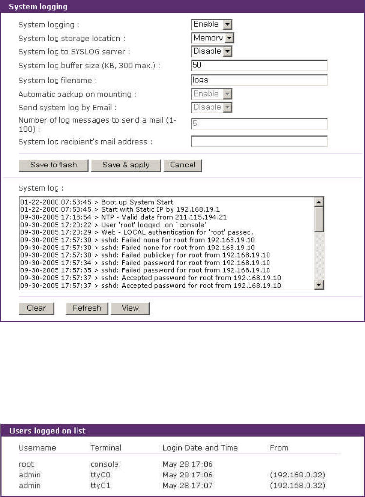 logs. Figure H-10 shows the screen of viewing the log of Port #1 after clicking the View log button.