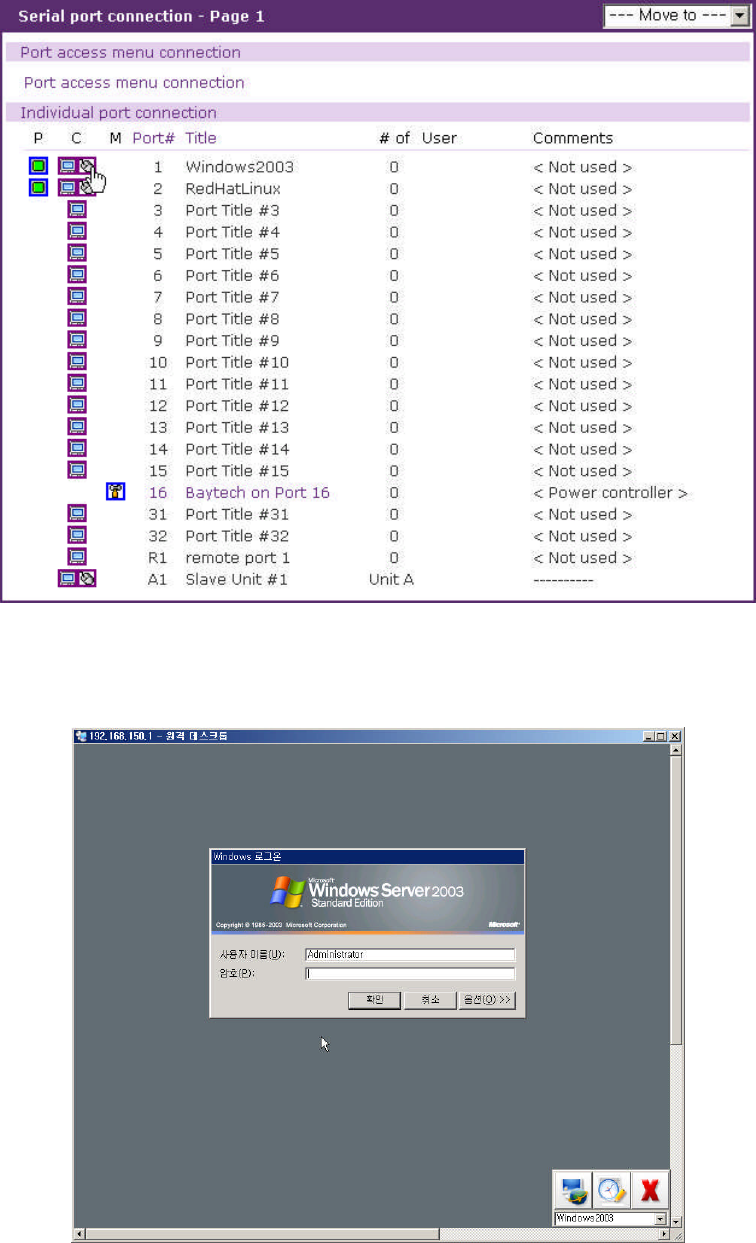 Step 6. Click the KVM connection icon of C(Connect) column of the Port #2 and make the Virtual