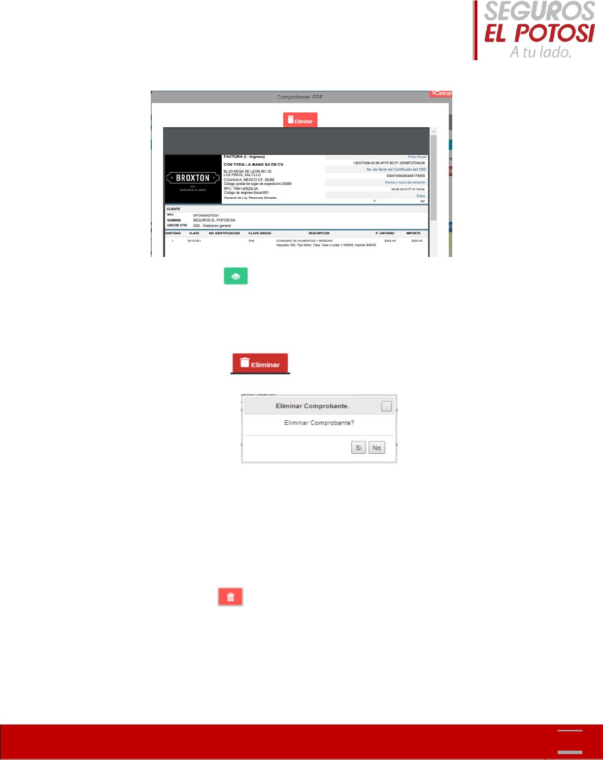 1. Click al botón [Eliminar] ( ), dentro de la ventana comprobante.