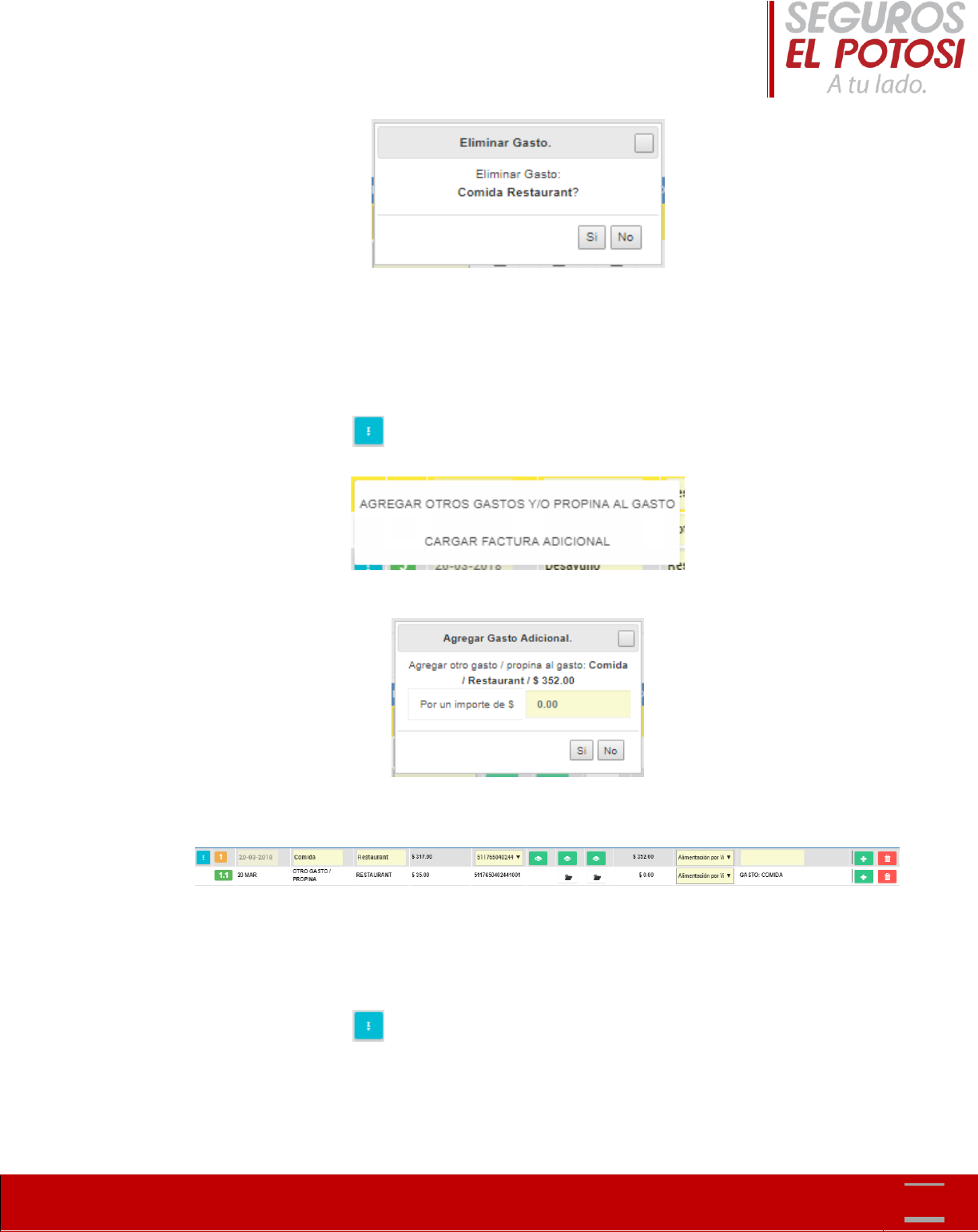 3. Presionamos el botón que se encuentra al final de cada registro (gasto).