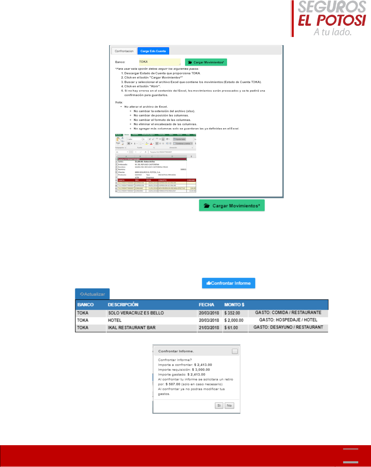 gastos registrados, es necesario hacer la confrontación del estado de cuenta TOKA y los gastos