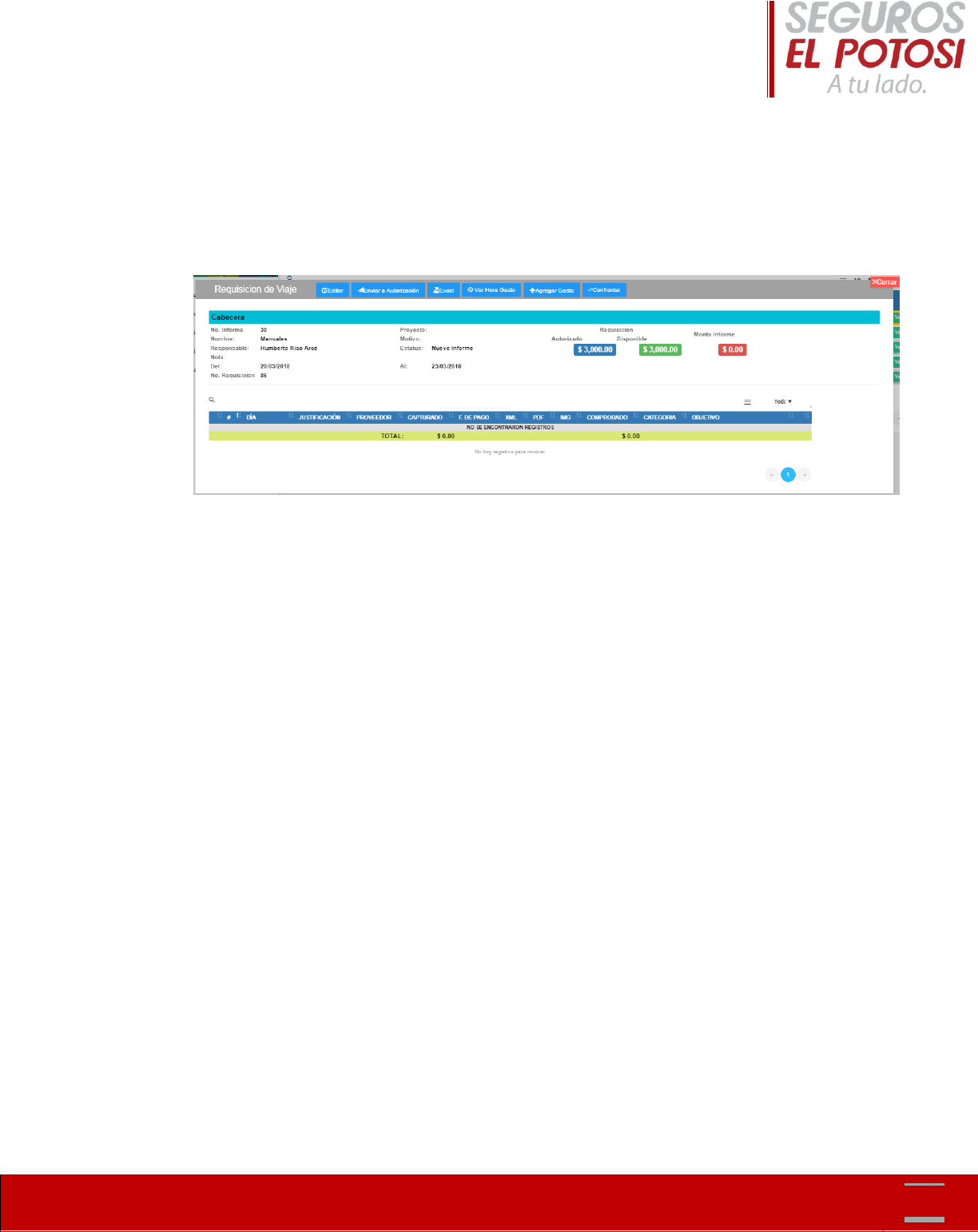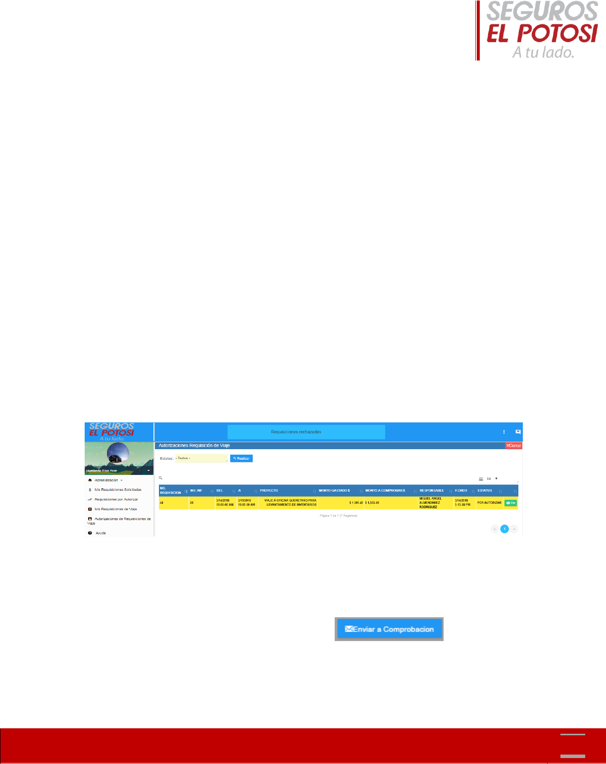 gastos, el siguiente paso es enviar la requisición de viaje o informe a autorización, para lo cual se