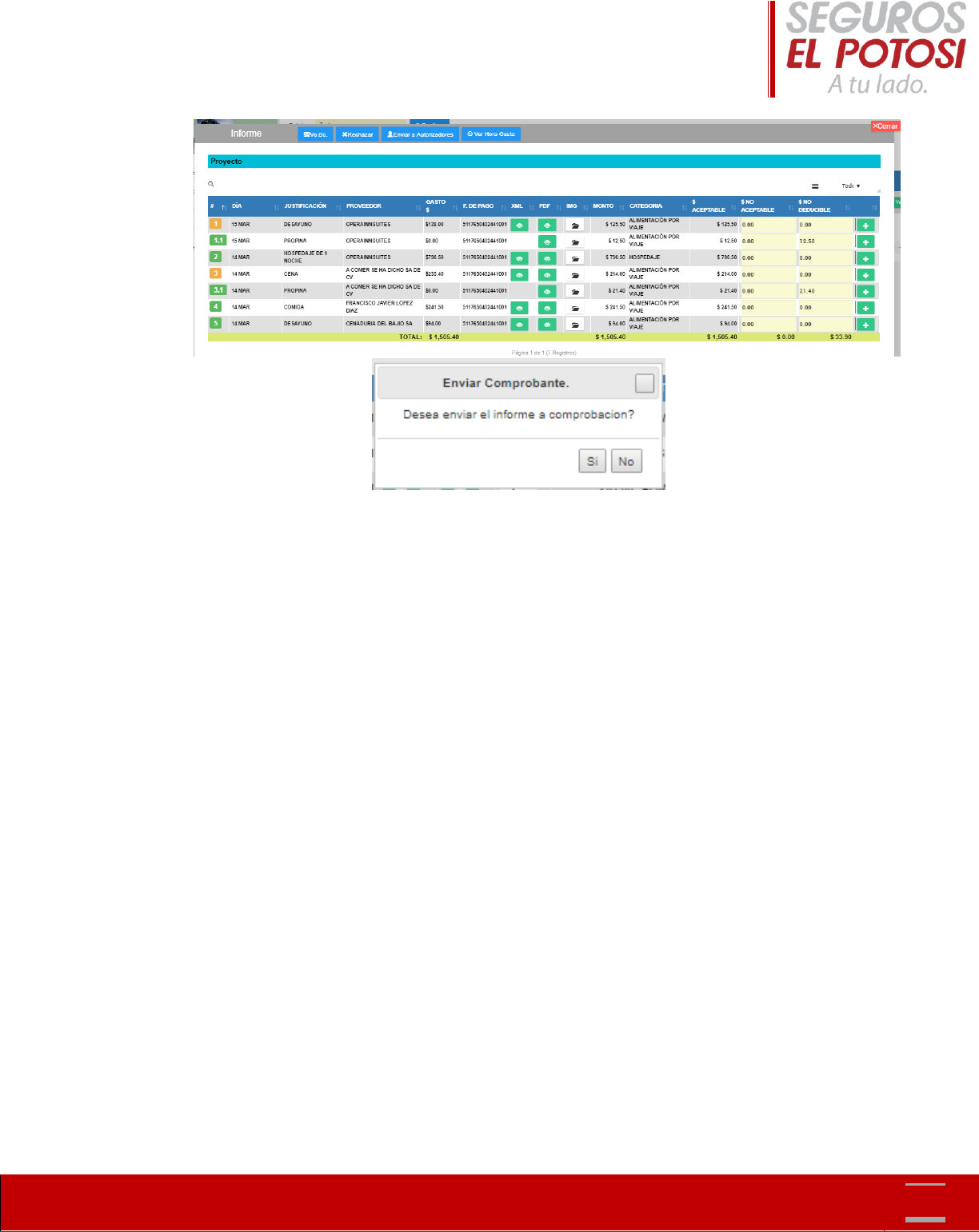 7. Al terminar nos notificara en pantalla que “El informe fue enviado a comprobación”.
