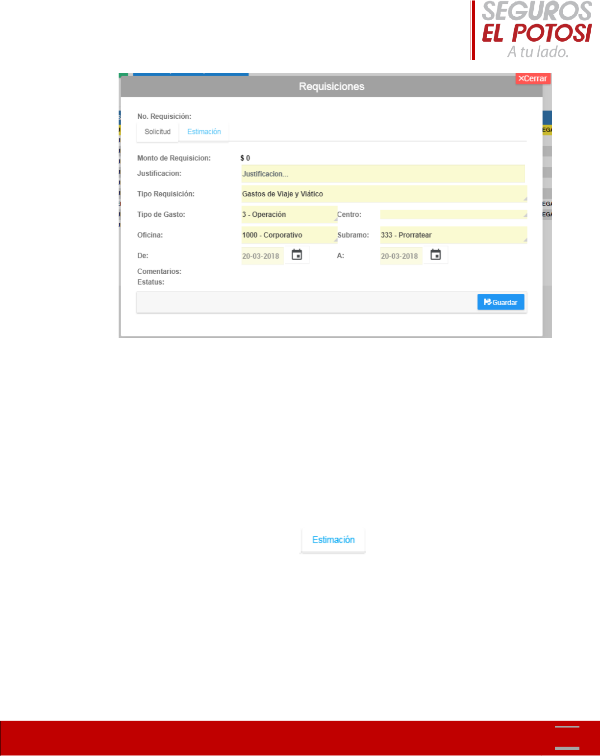 5. Llenamos la información solicitada, para crear la cabecera de la requisición.