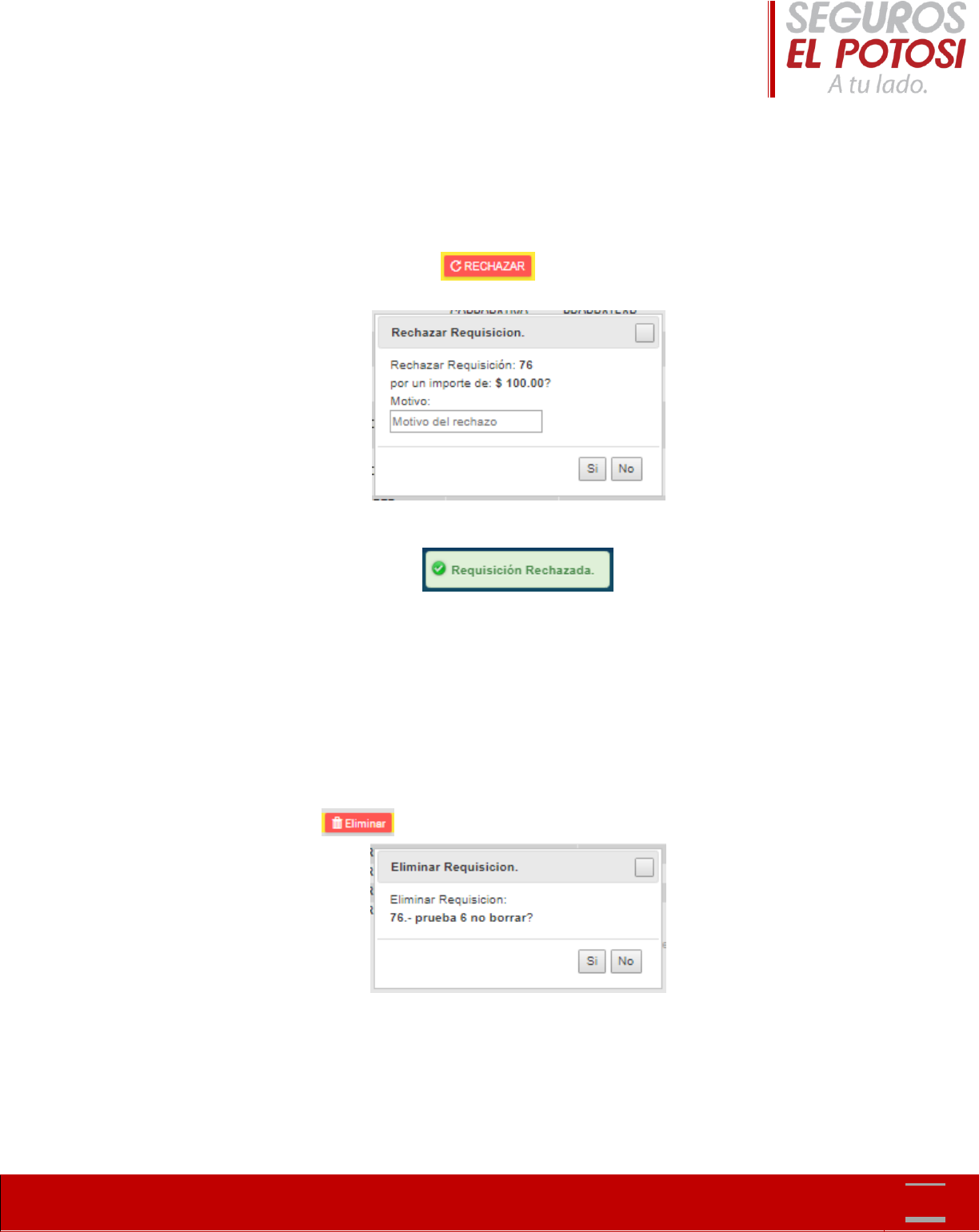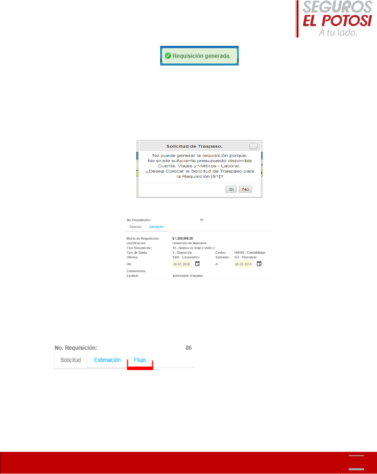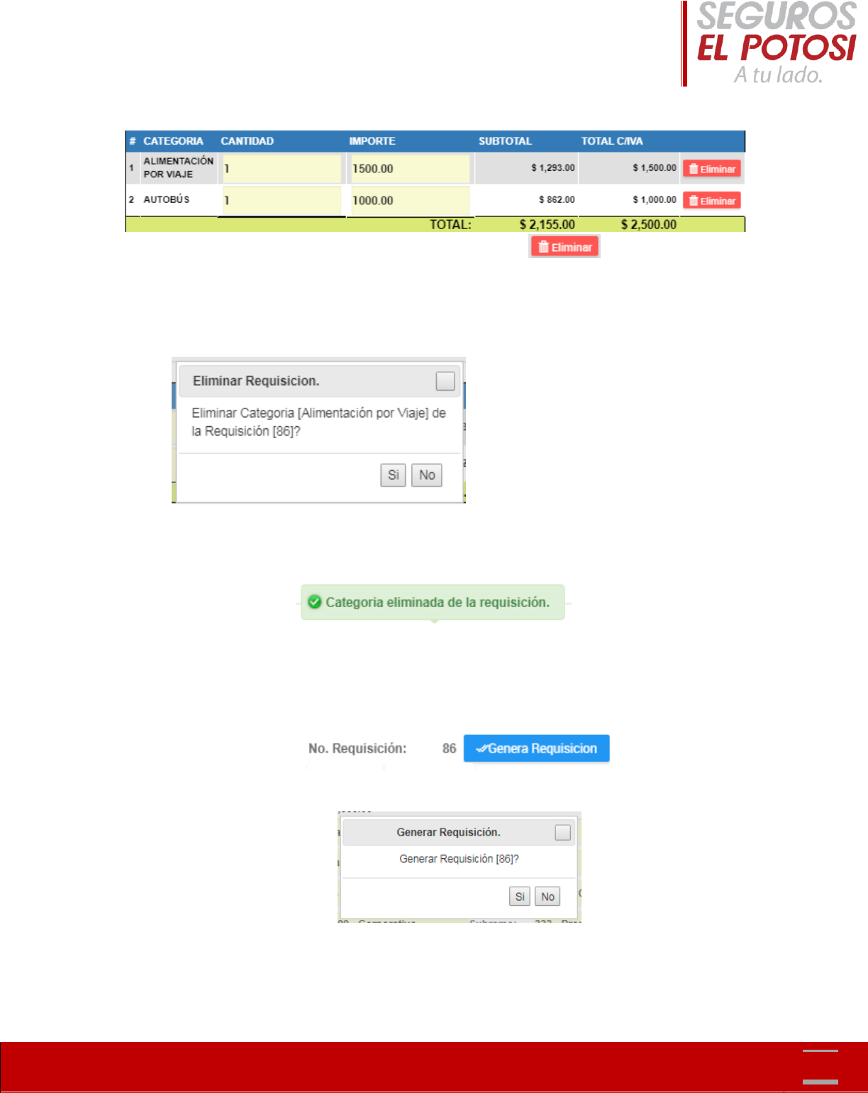 6. Nos pedirá una confirmación, presionamos [Si] y la requisición se enviara al sistema