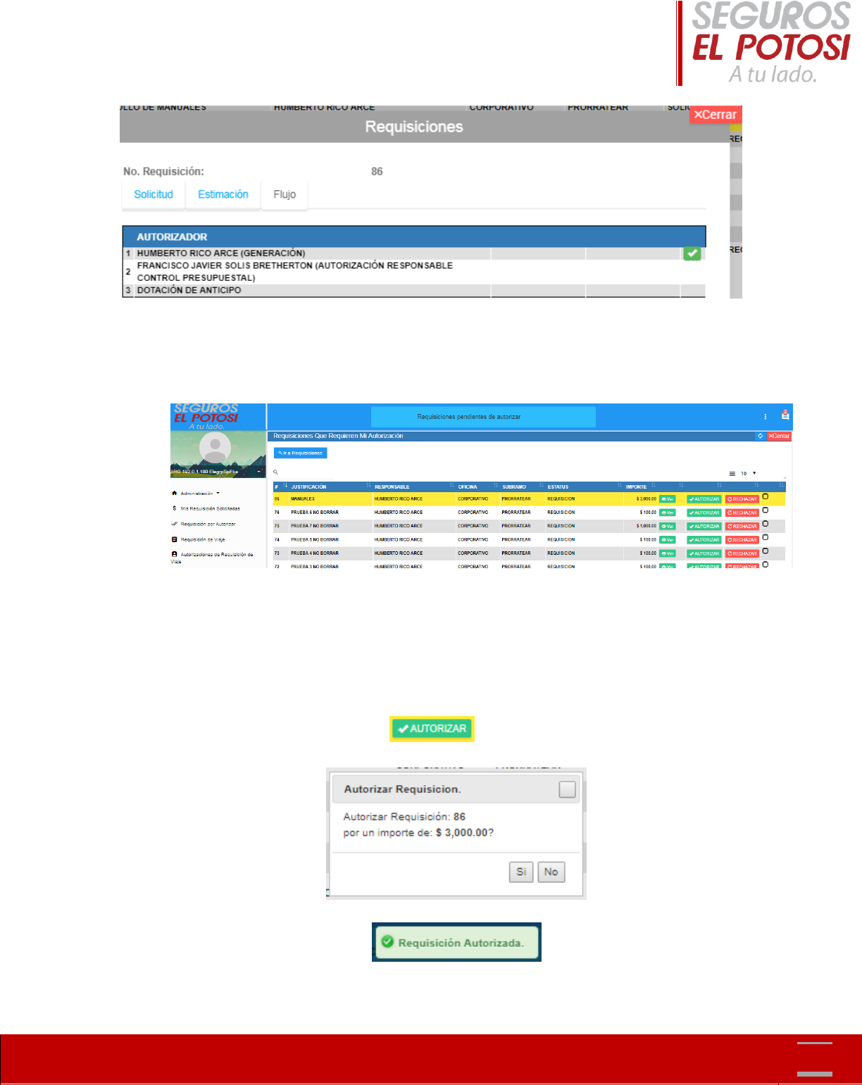 3. Nos pedirá confirmar el enviar a autorización, si estamos de acuerdo click en [Si], la
