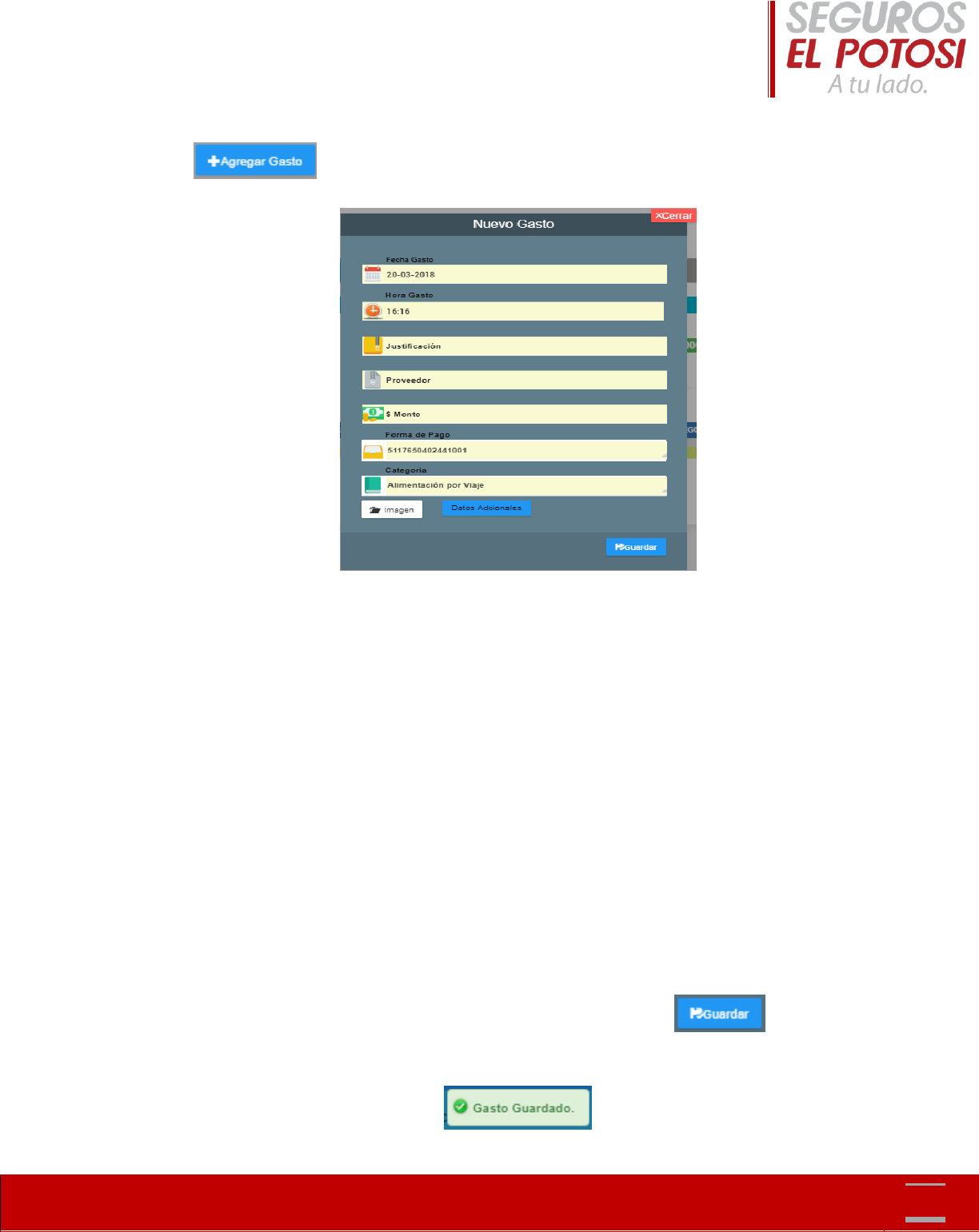 El proceso de agregar comprobantes al gasto se puede hacer solo en estatus “Nuevo” o “Activo” y