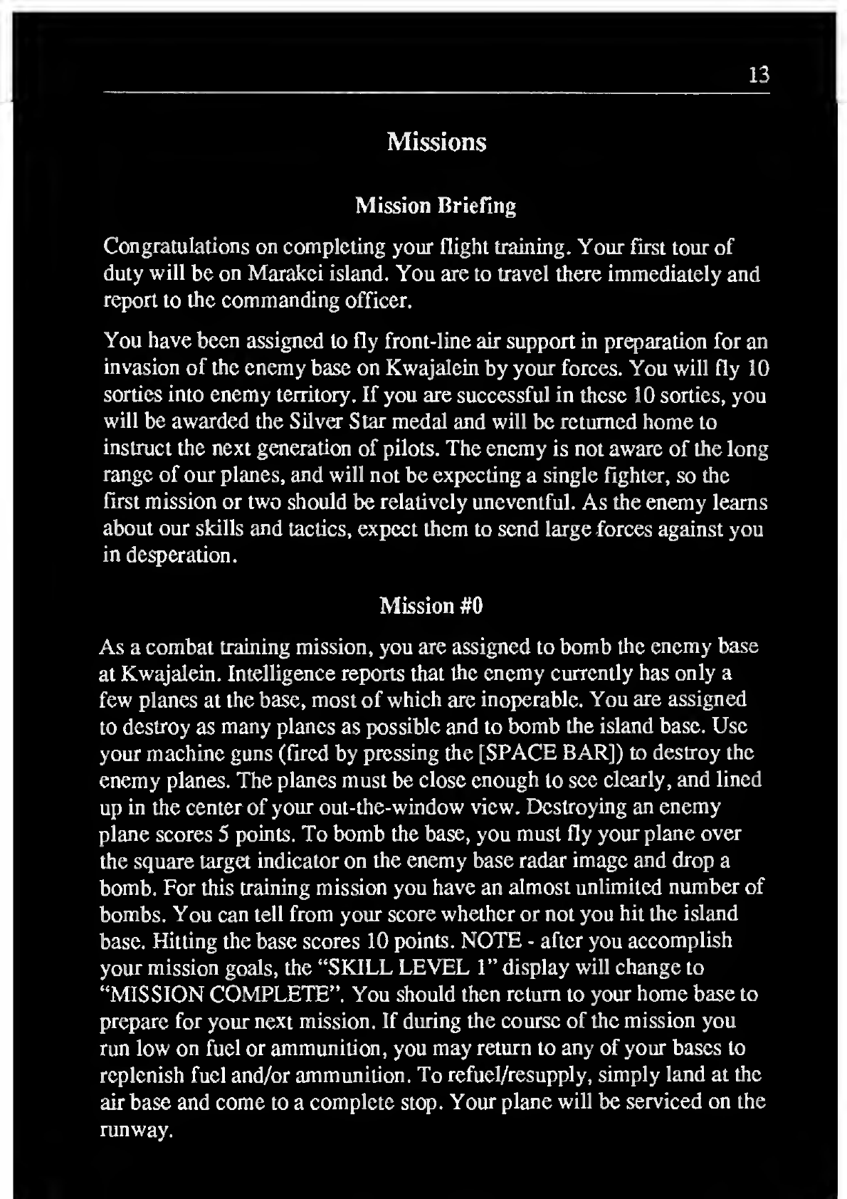 invasion of the enemy base on Kwajalein by your forces. You will fly 10