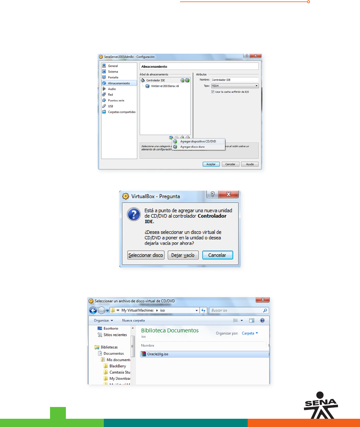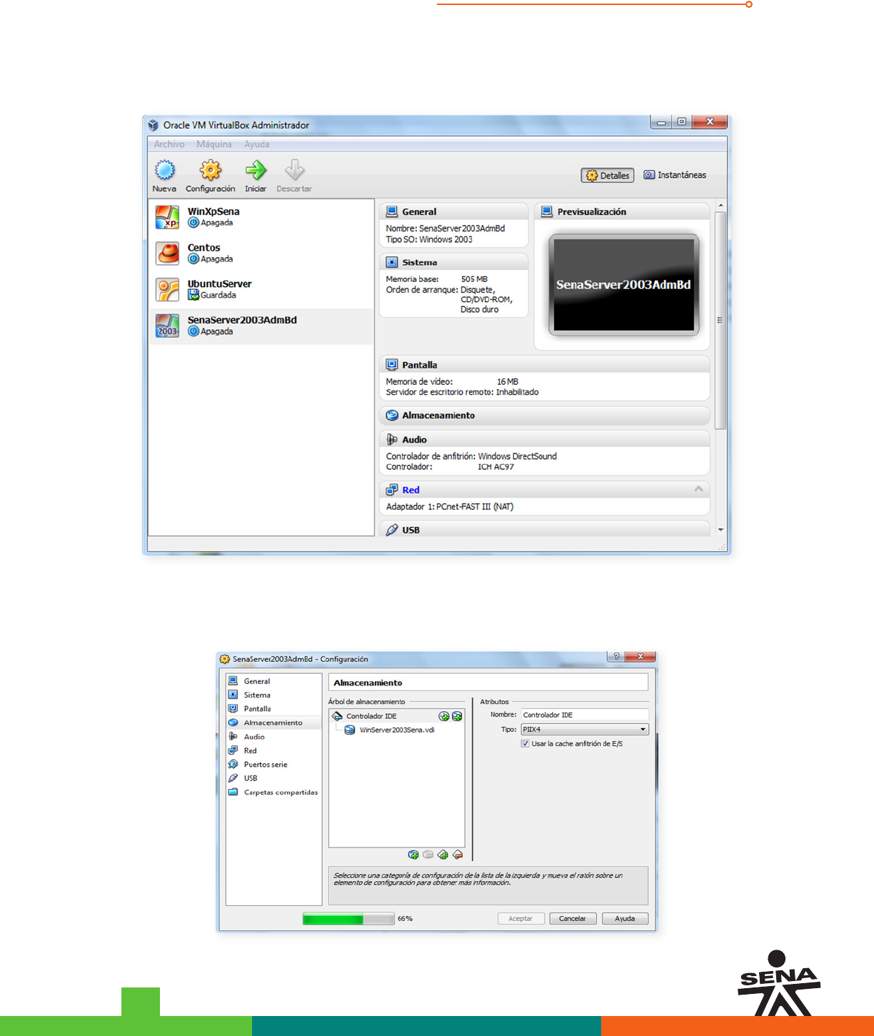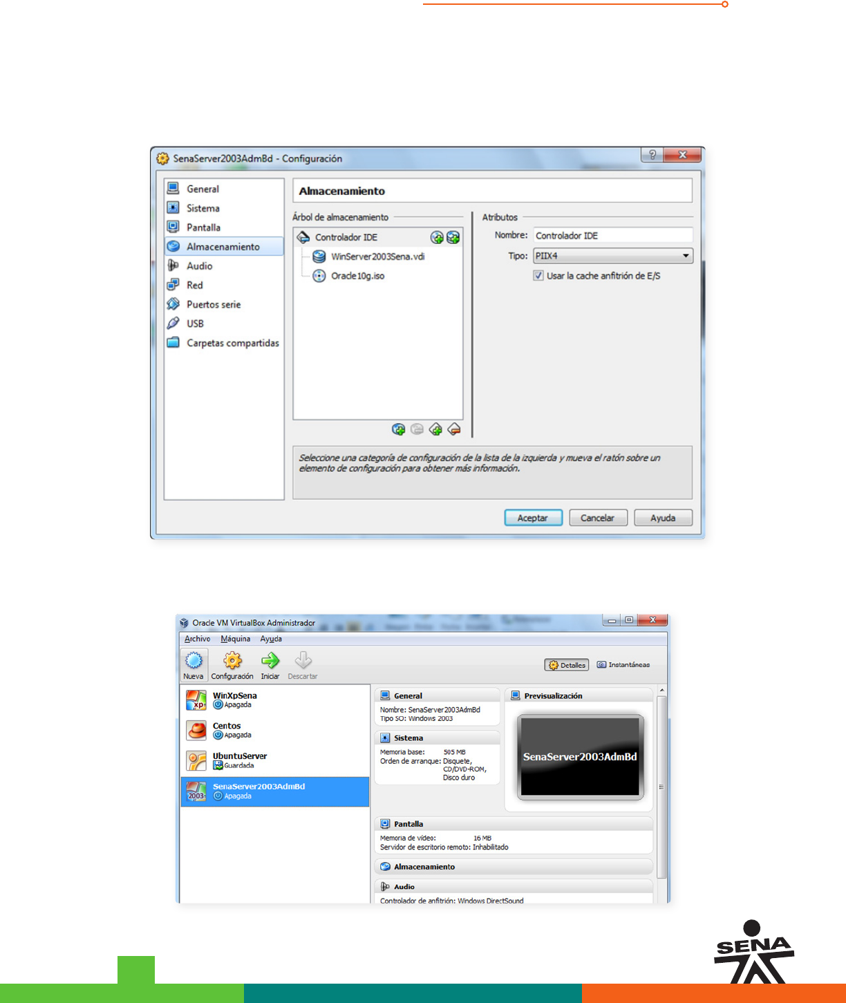 Verifique que el disco duro virtual “WinServer2003Sena.vdi” este