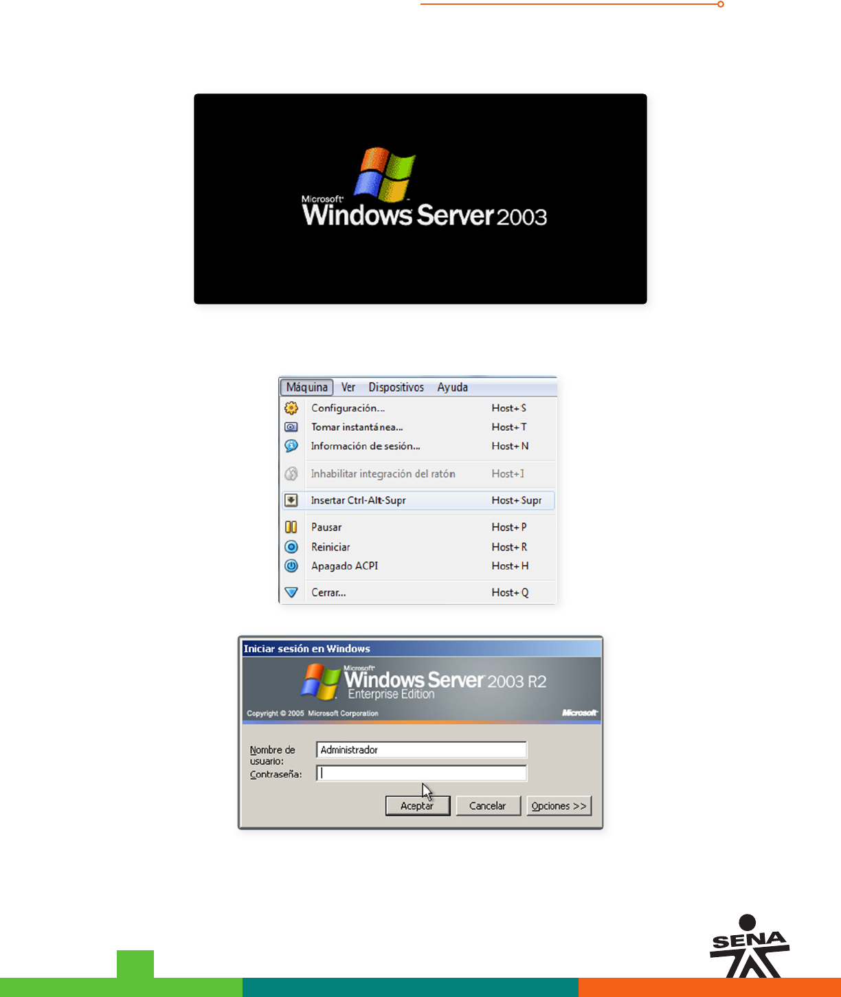 Inicie la maquina virtual “SenaServer2003AdmBd”.