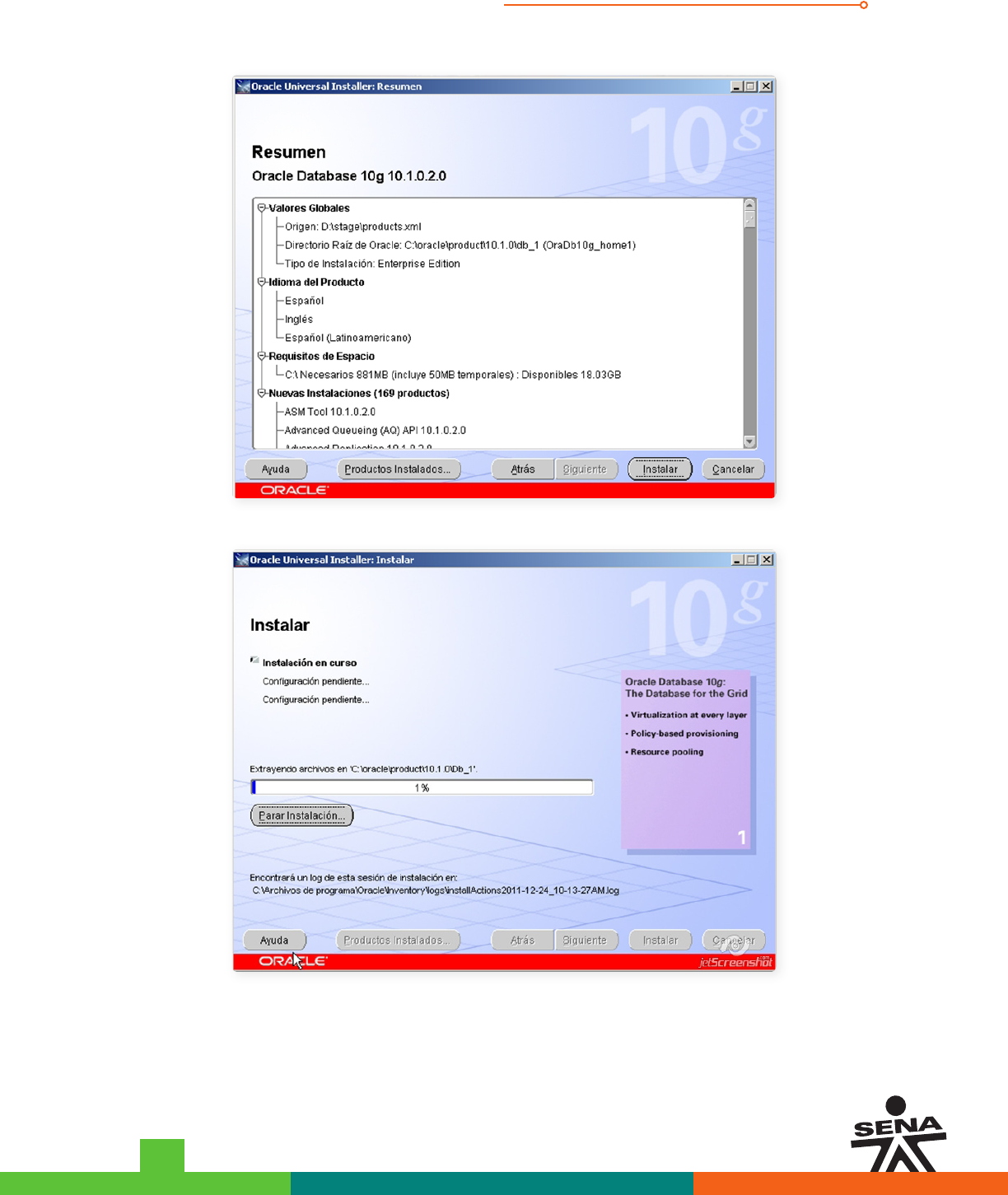 Para tener en cuenta: Durante la instalación de Oracle 10g al hacer clic en