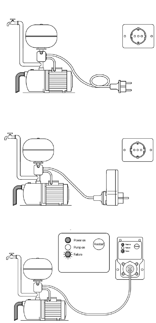 • Zastaví čerpadlo v prípade akéhokoľvek nedostatku vody, čiže chráni proti behu na prázdno.