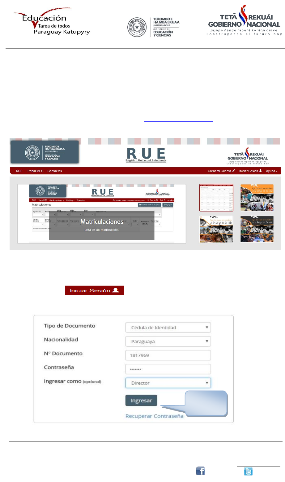 Se accede a través del siguiente enlace www.mec.gov.py/rue