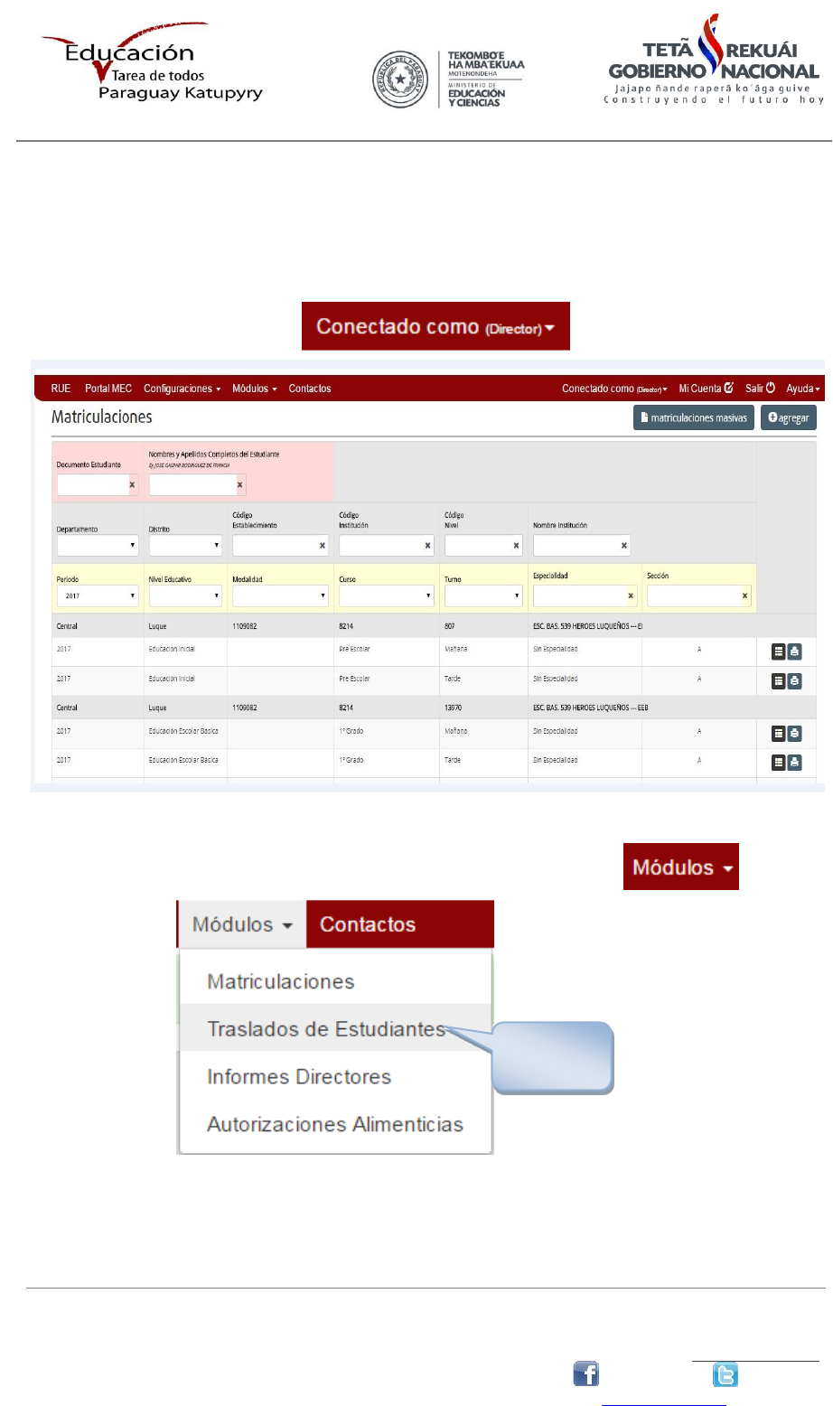 Importante: El traslado lo hace el Director, se puede realizar indistintamente desde la