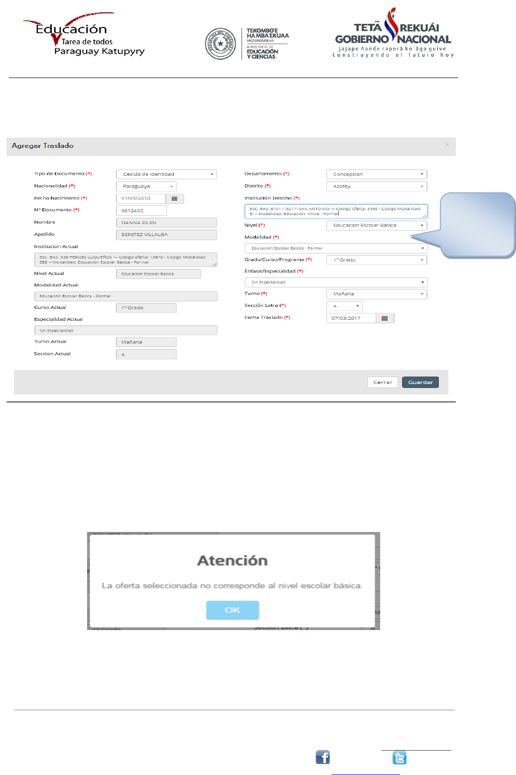 Si la oferta educativa seleccionada no corresponde el sistema emitirá el siguiente mensaje