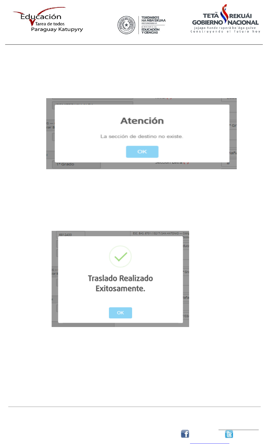 Si la sección o turno seleccionado no corresponde el sistema emitirá el siguiente mensaje