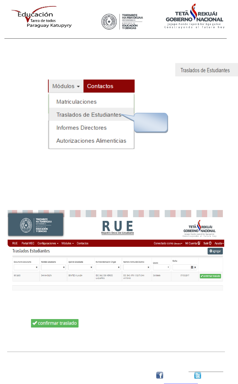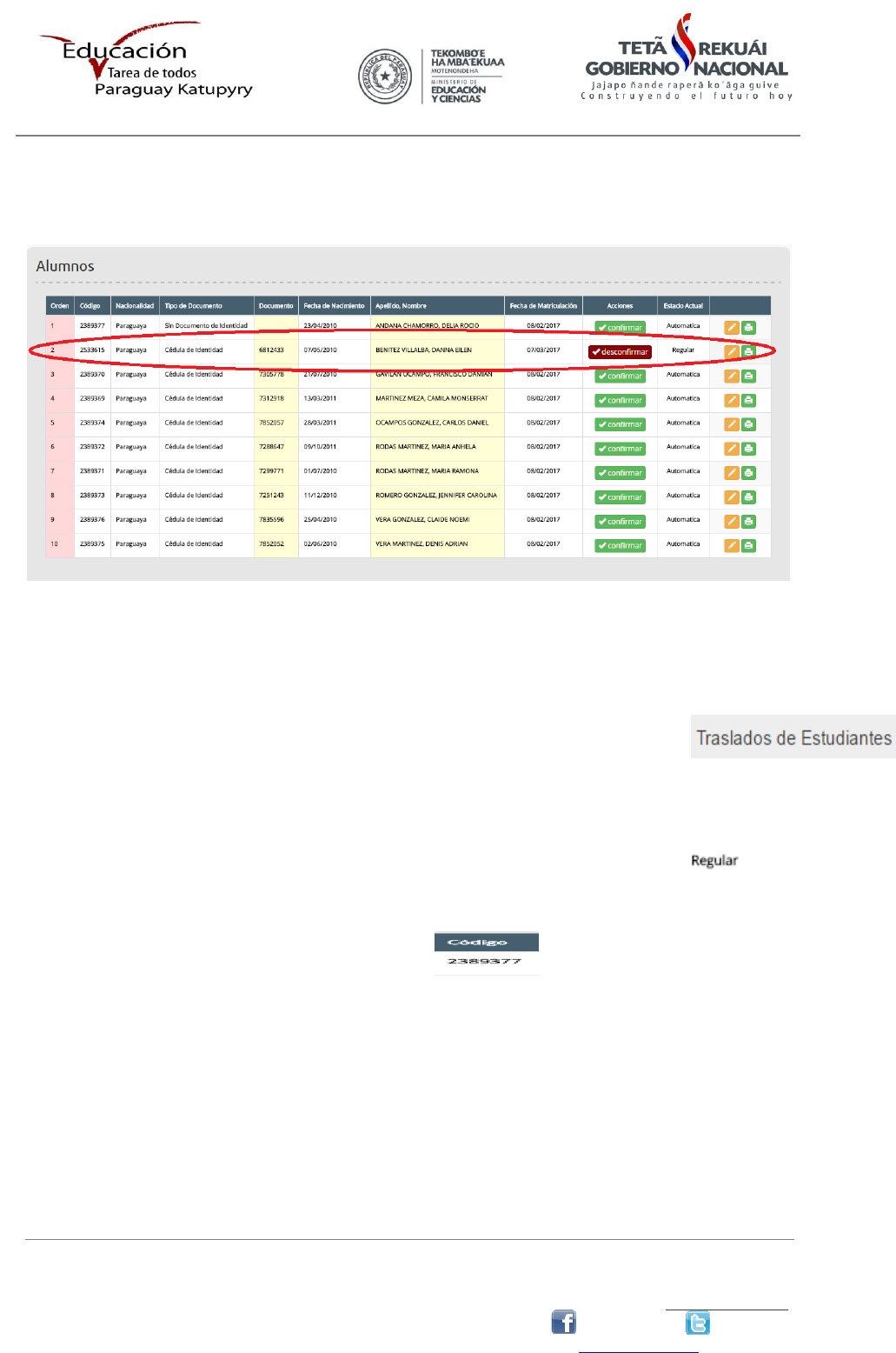 3- Una vez confirmado el traslado del estudiante pasa a ser alumno de