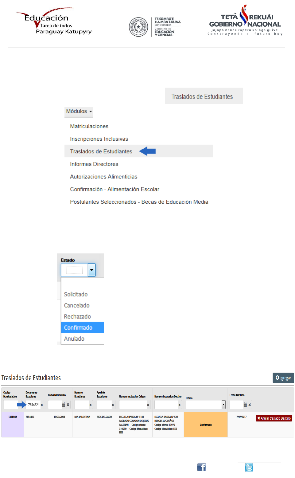 Ingresar a Traslado de estudiantes, estado Confirmado