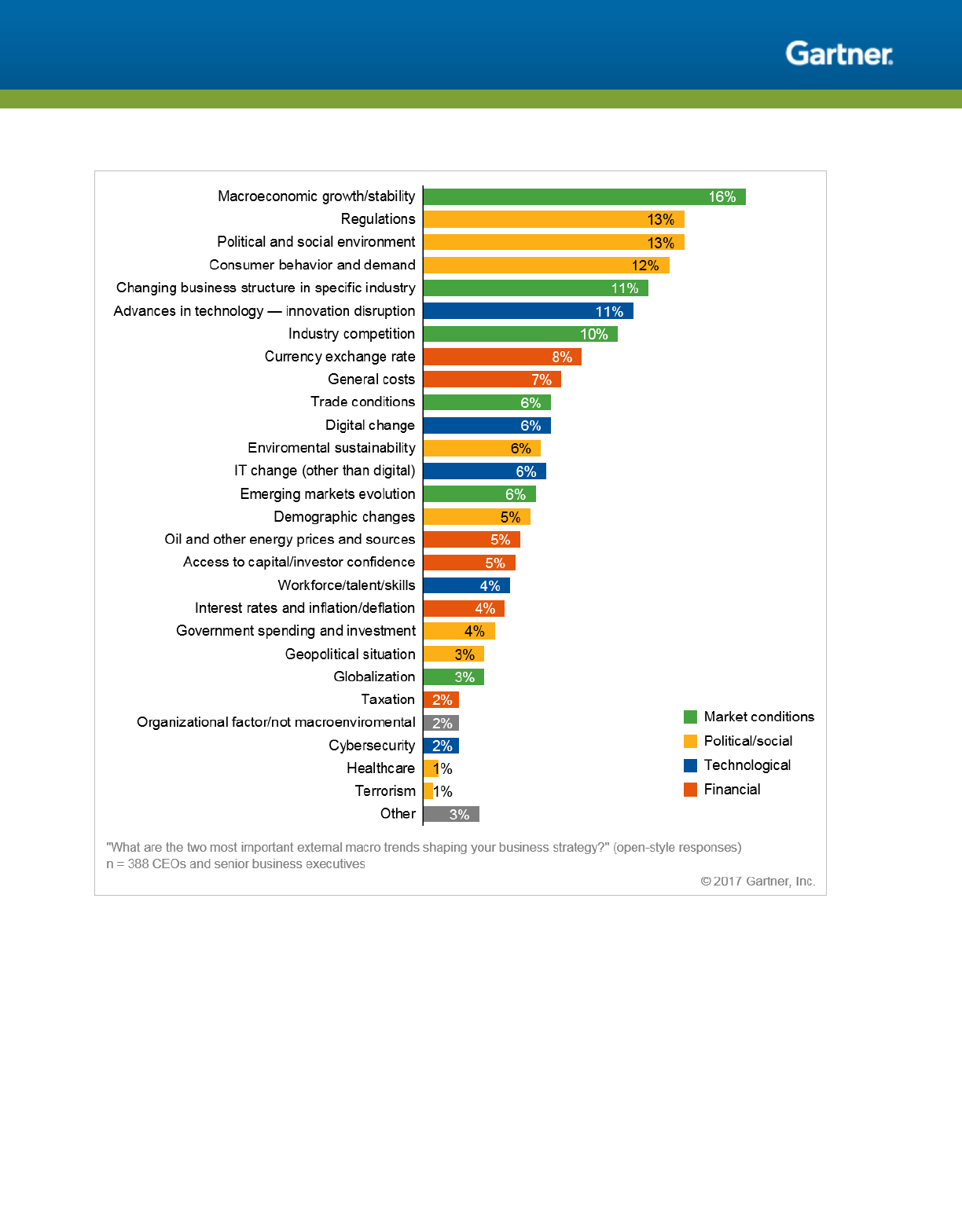 Figure 1. Gartner 2017 CEO Survey External Macrotrend Rankings: Ranked by Mentions Within Top Two