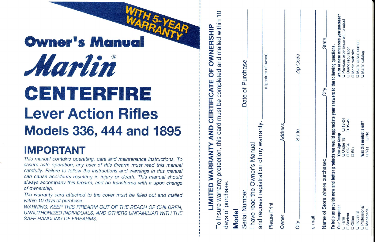 Marlin 336, 444, 1895 Marlin 336, 444, 1895