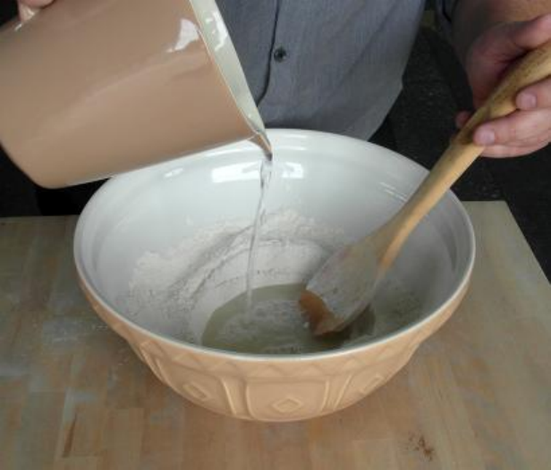 thumb is to add 60% water. So for 1 kilo of flour, add 600ml water. If using a wholemeal flour,
