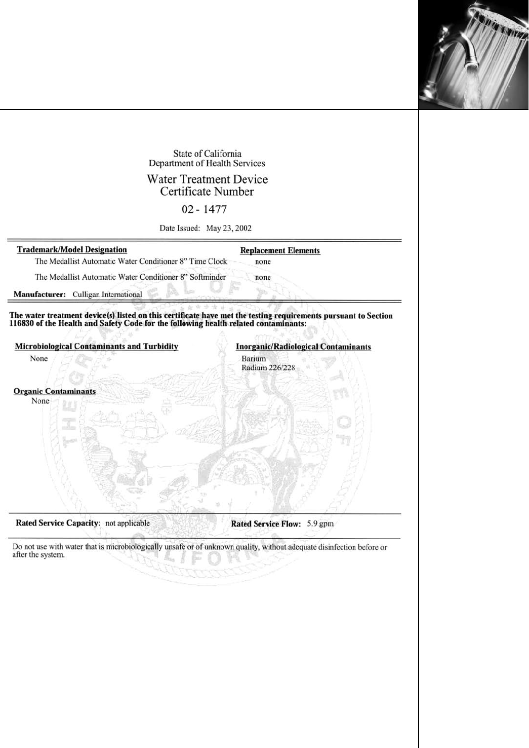 The Culligan Medallist Series® 8 Water Softeners are tested and certified by