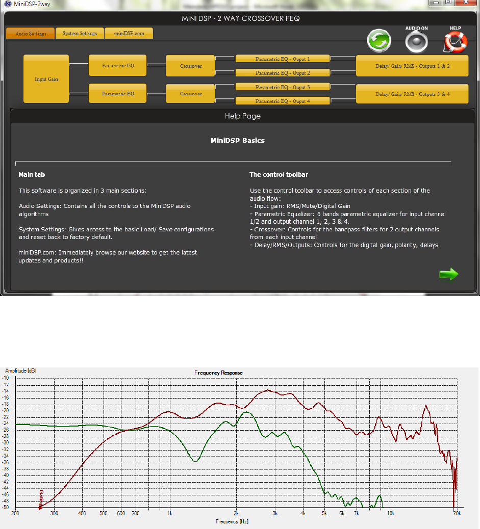 active filter via the USB link to a miniDSP active filter. Using a interfacing and communication software the