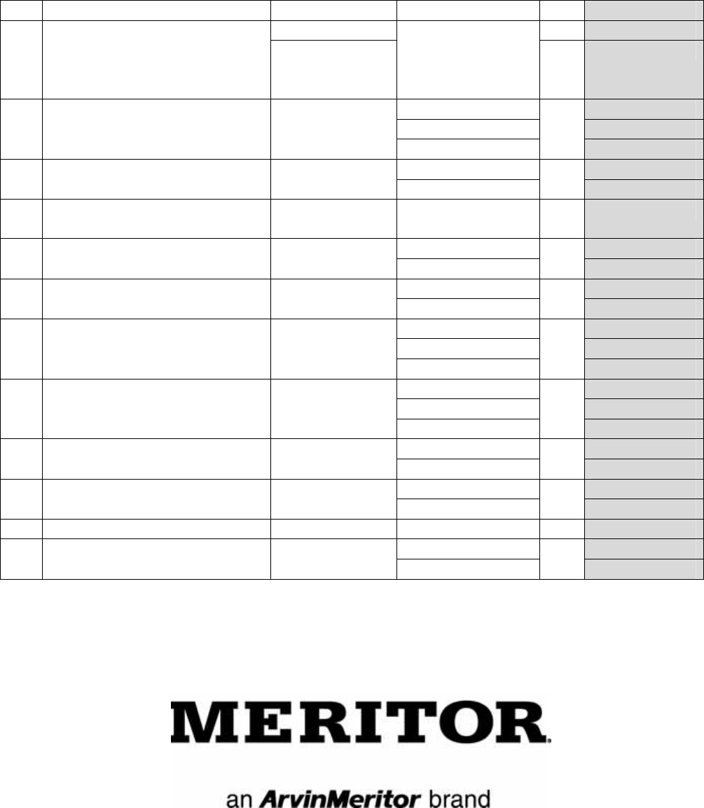 Only genuine ArvinMeritor replacement parts are covered by this aftermarket parts warranty.
