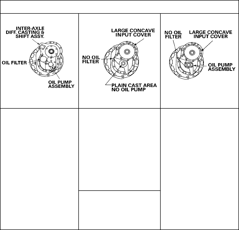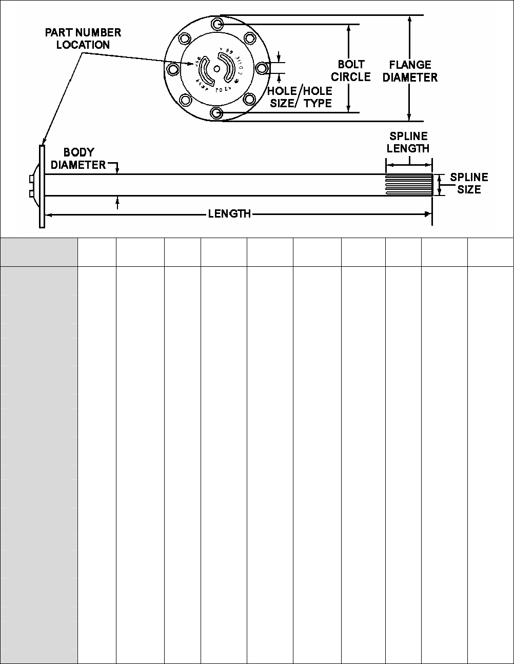 This chart covers the output shafts for the forward axles of all tandems. Note that the output shaft assembly
