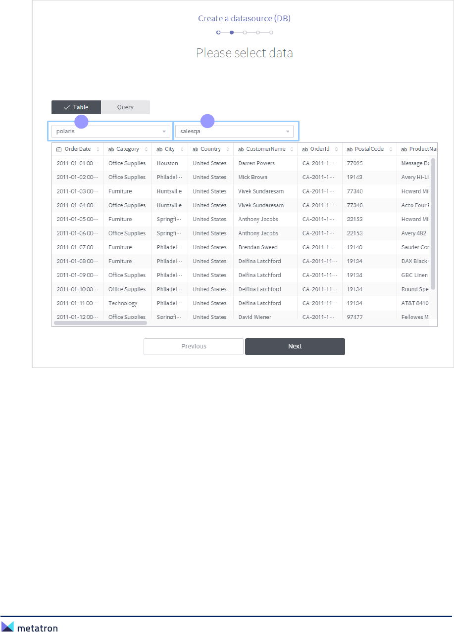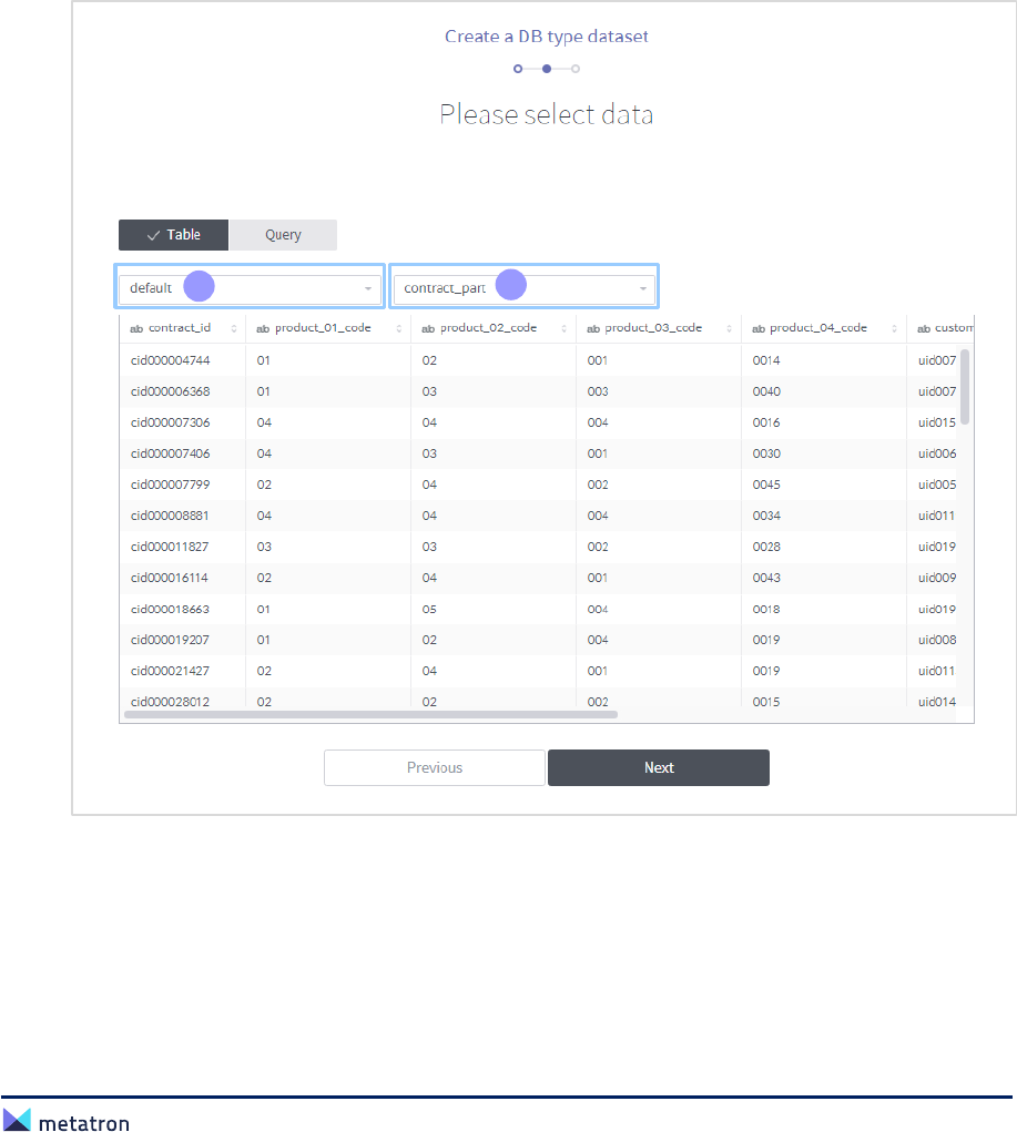 ❶ Database name: Displays the name of the selected database. By default, the first table