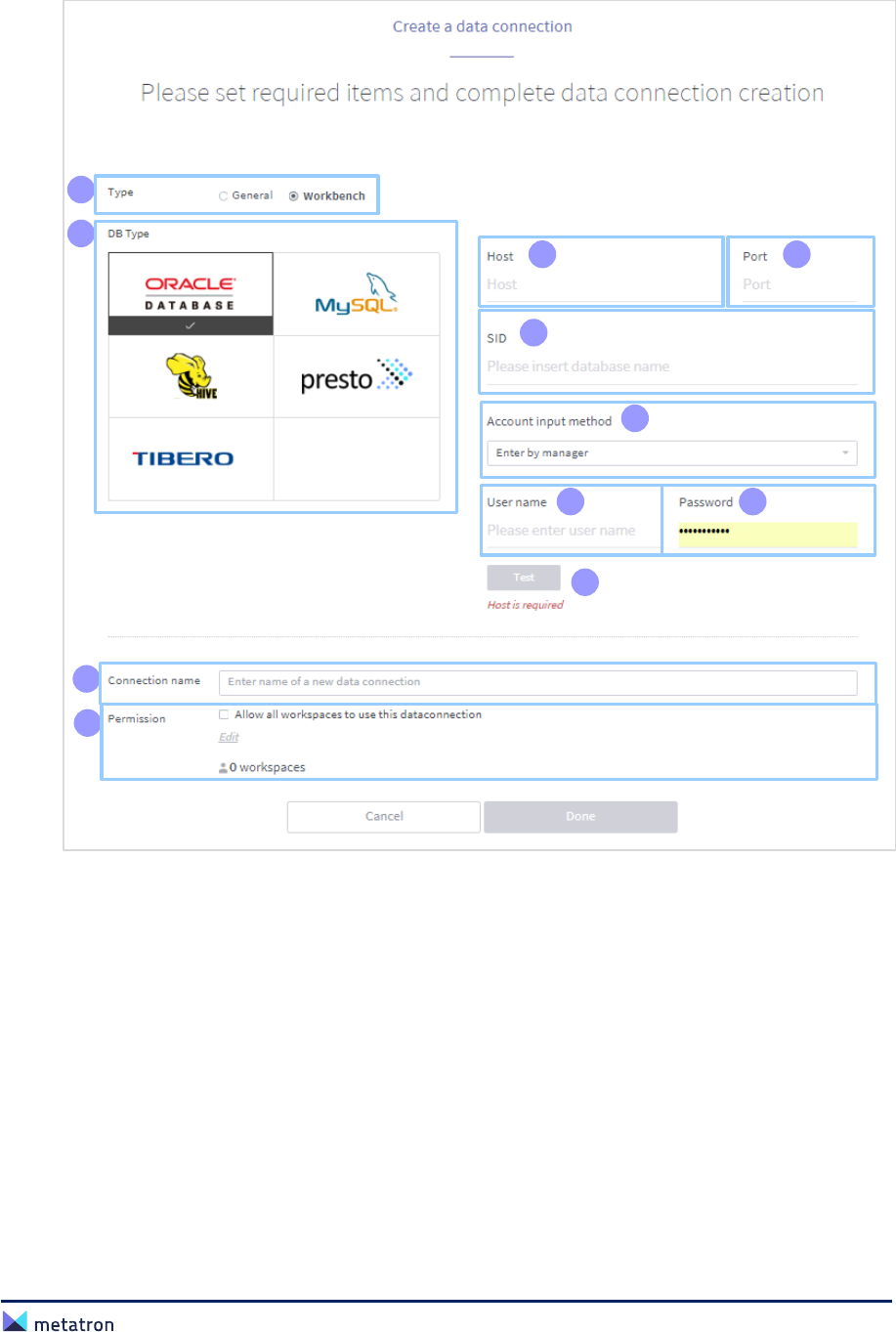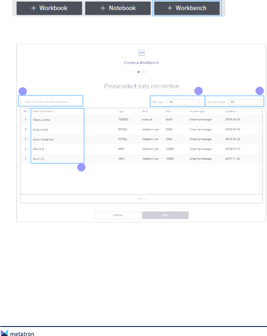❷ Data Connection: Name of the data connection linked with the workbench. Click the