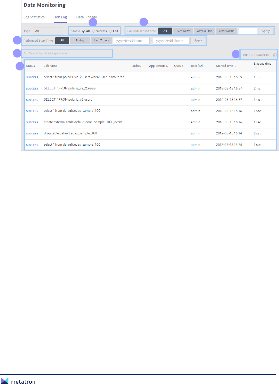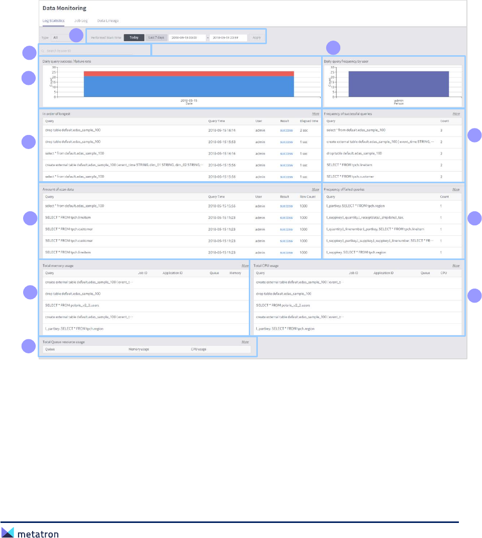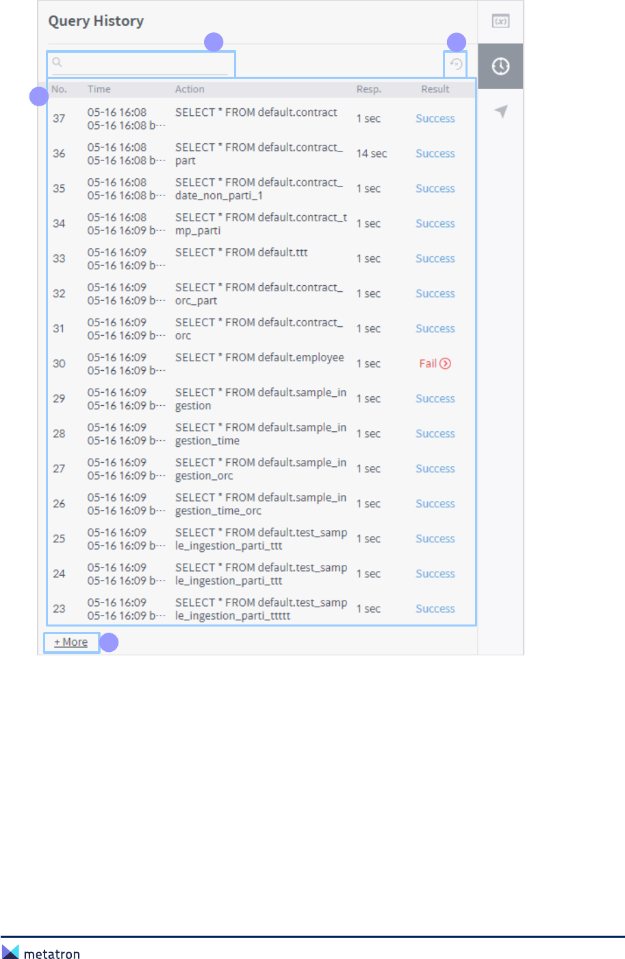 ❸ Query list: Display information of queries executed after the last deletion of the query