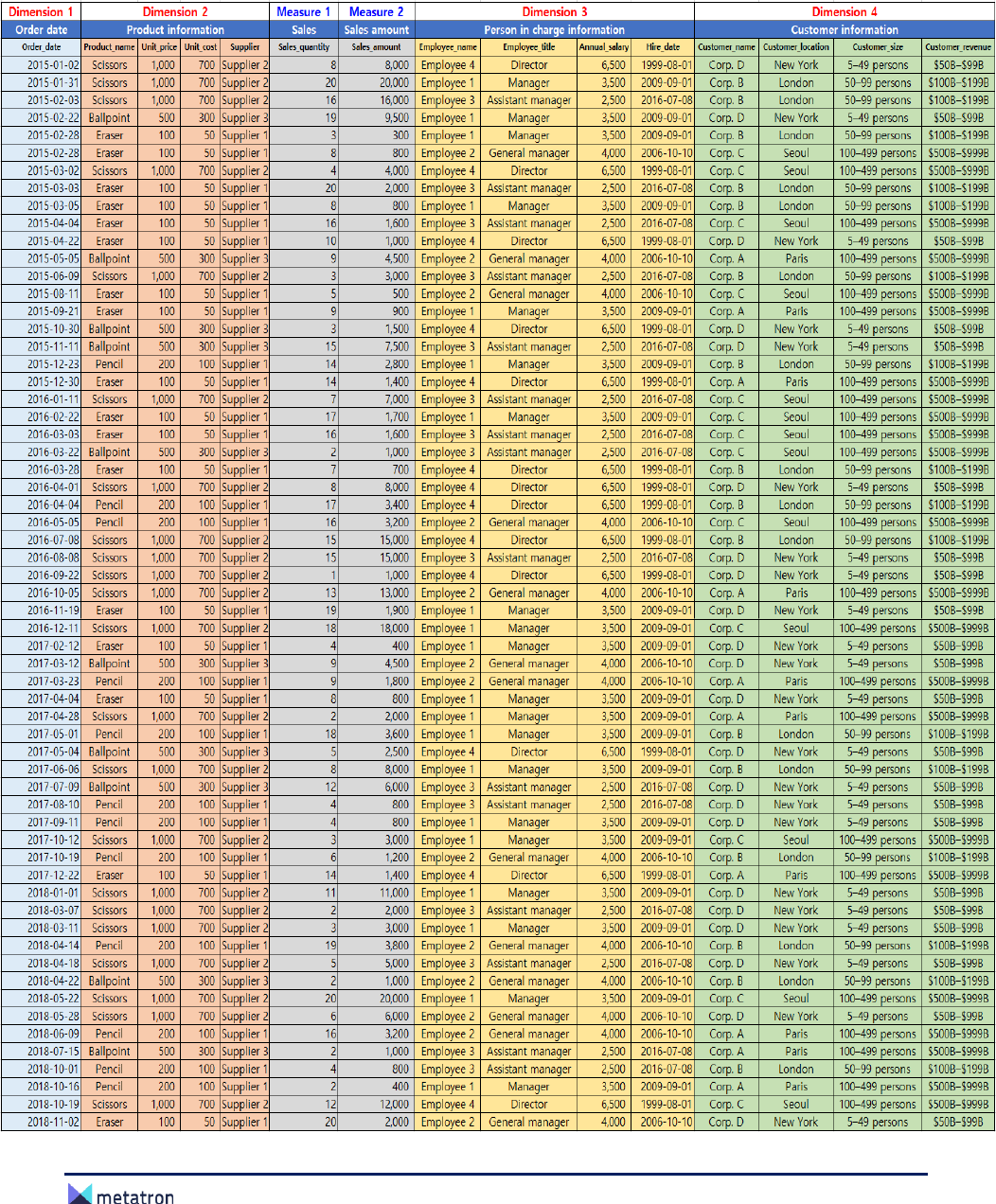 various types of Dimension data based on