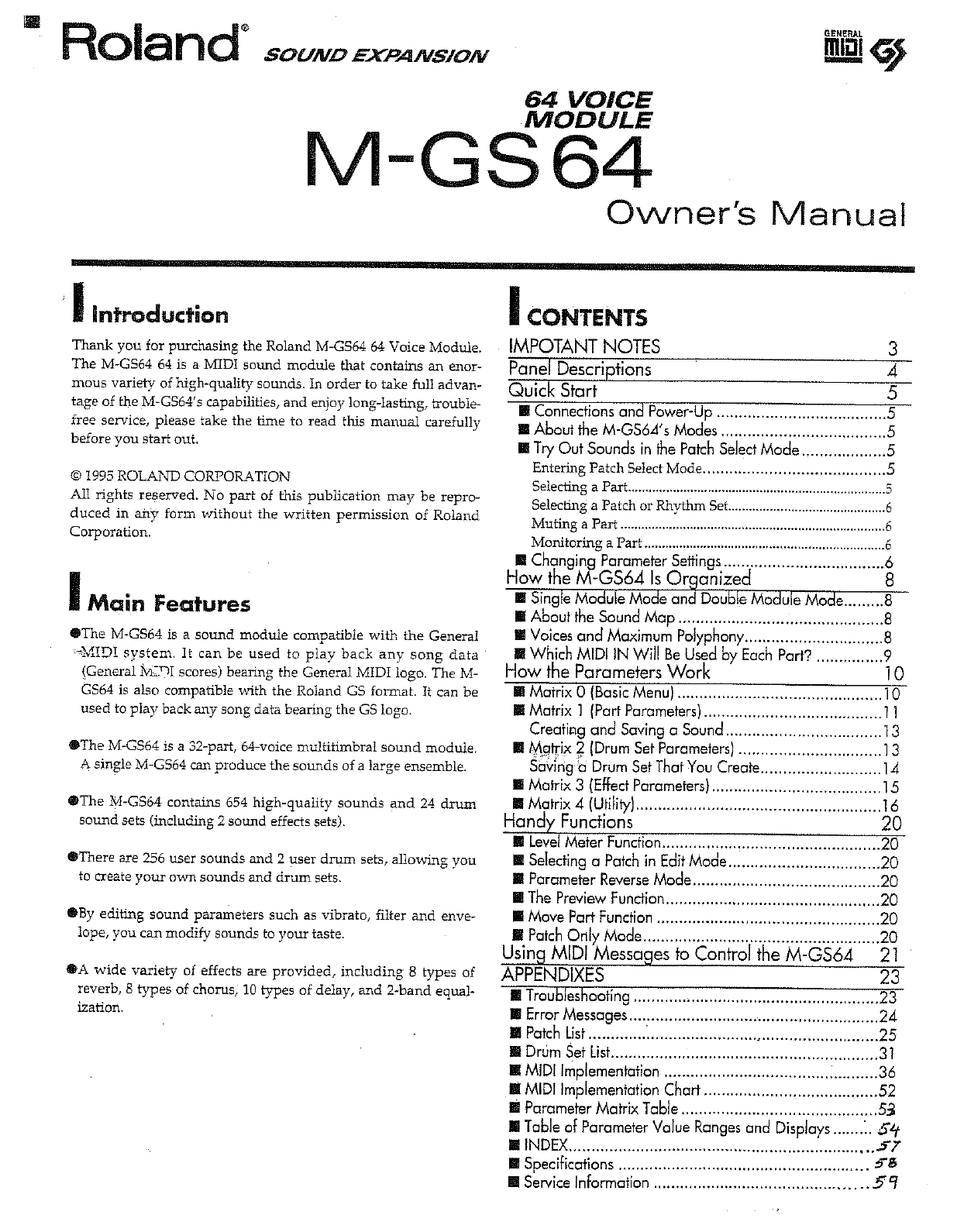 Roland Corporation M GS64 Owner's Manual Om