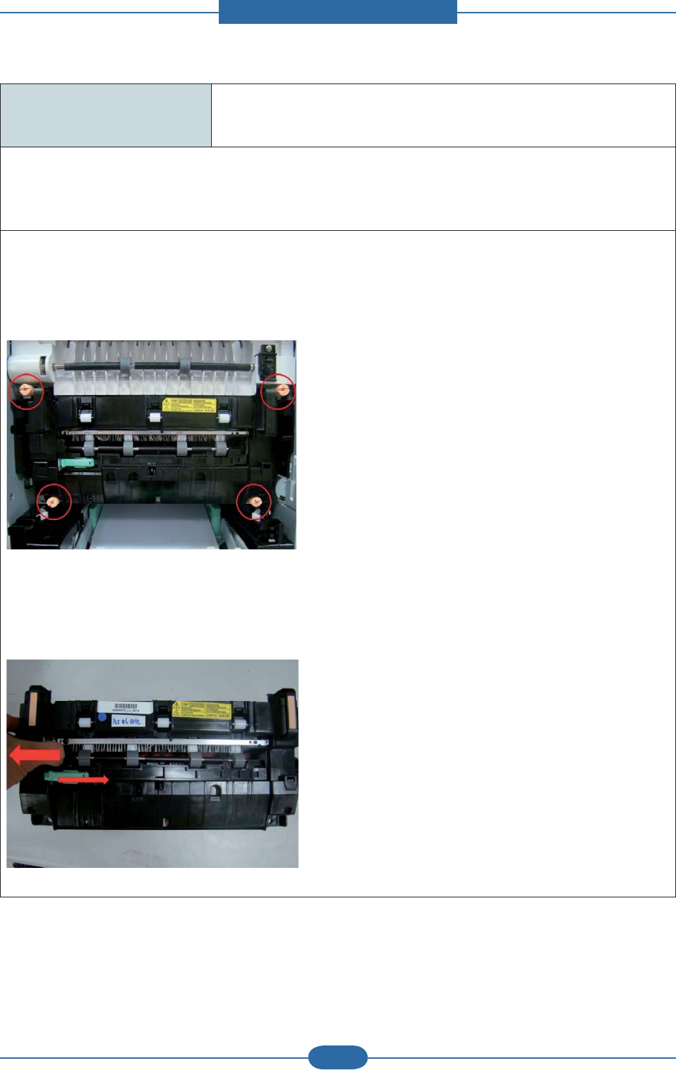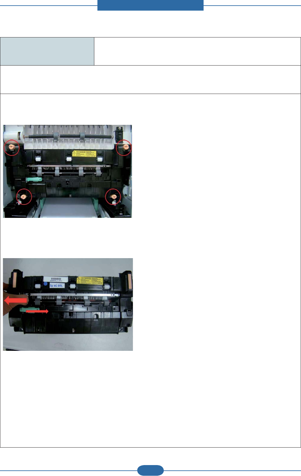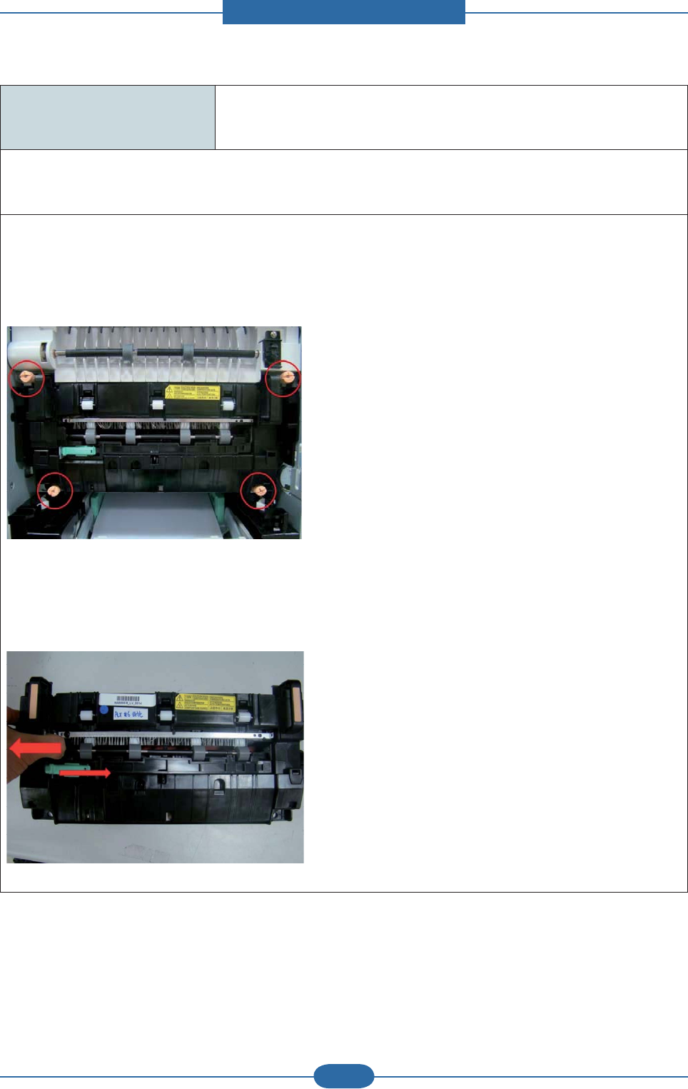 5. If there is no problem for above steps, reassemble the fuser unit and turn the machine on.
