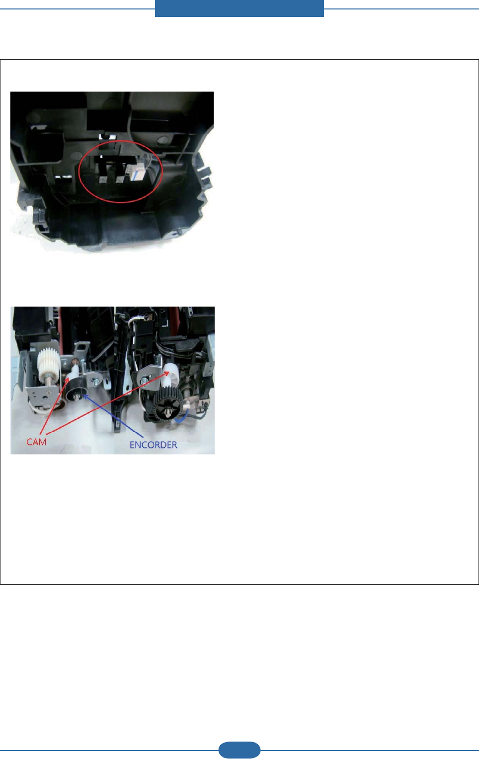 b. Rotate the gear to direction of arrow and check the surface of the Hear roller and Pressure